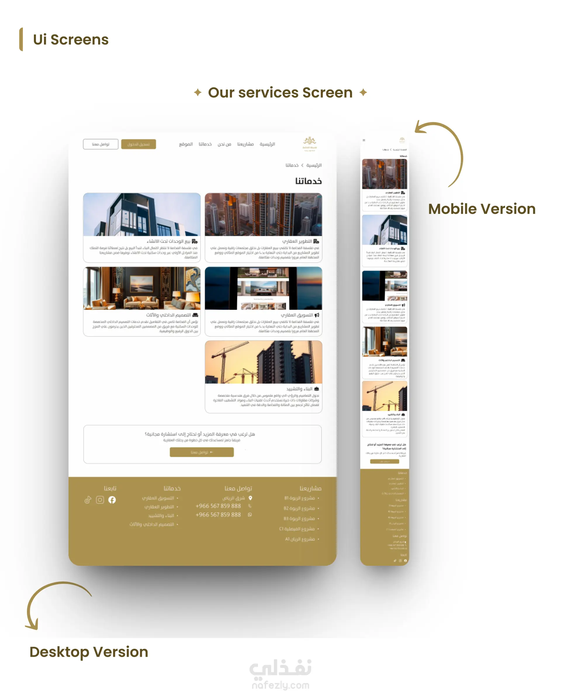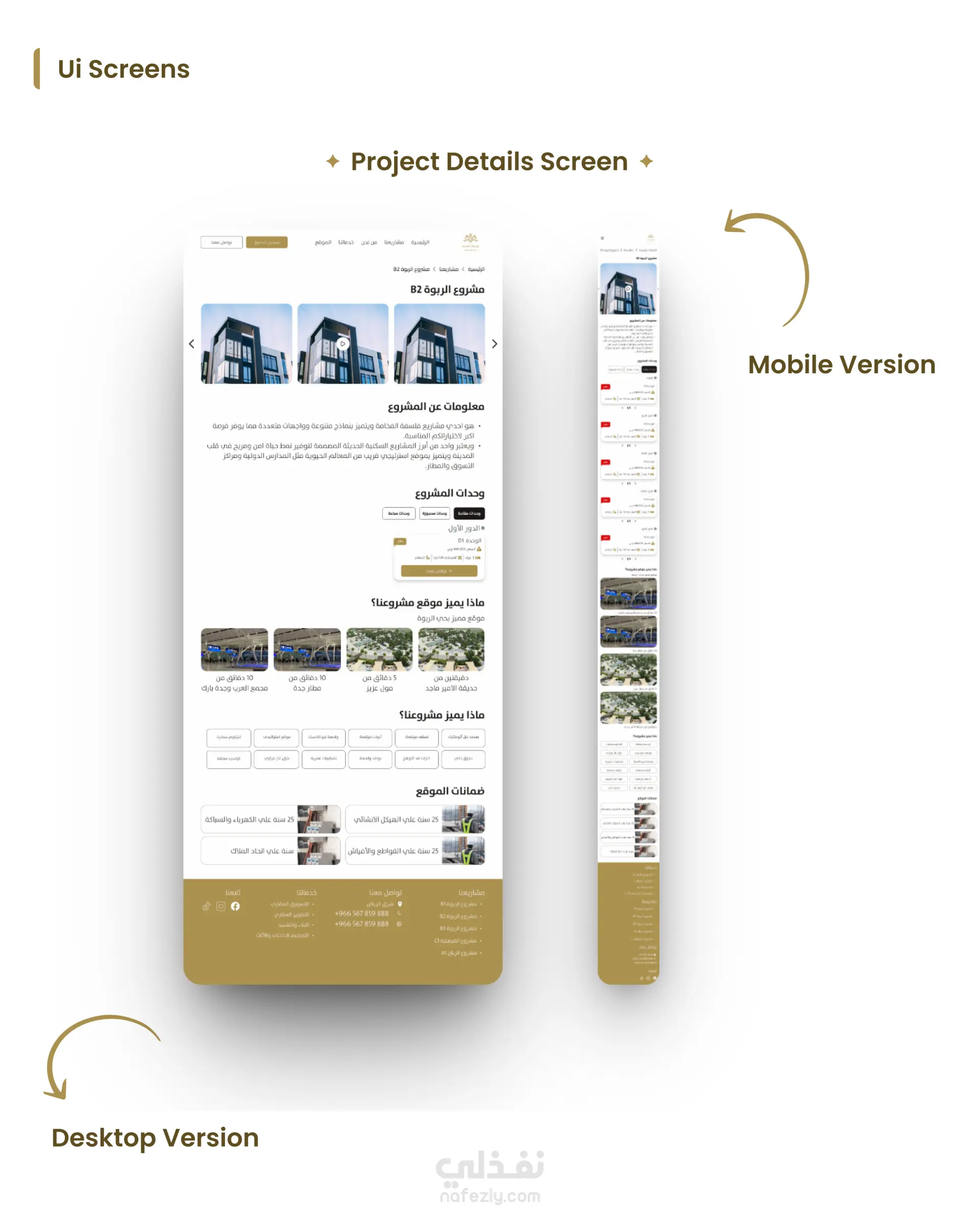 عملت على موقع عقاري لشركة سعودية كان الهدف منه عرض المشاريع والوحدات المتاحة، سواء المحجوزة أو المتوفرة، لتسهيل عملية التواصل مع العملاء. بدأت المشروع بجمع وتحليل المتطلبات، ثم قمت بتصميم الـ Wireframes وعرضها على العميل للمراجعة. بعد ذلك، طبقت نظام التصميم (Design System) الخاص بالشركة وبدأت تنفيذ الواجهات. استغرق إنجاز التصميم حوالي أسبوع فقط، مع الحرص على أن يكون متوافقًا مع هوية الشركة وسهل الاستخدام للعملاء.