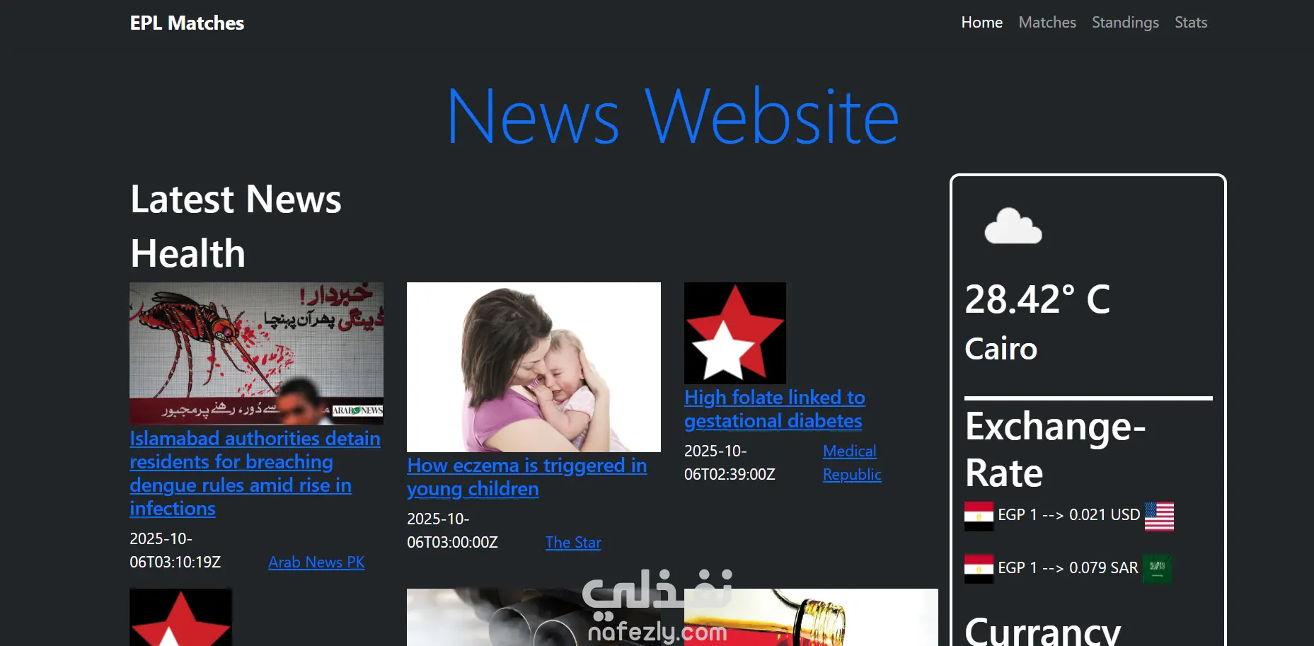 موقع اخباري و رياضي بسيط و تجربة عملية لاستخدام الAPIs