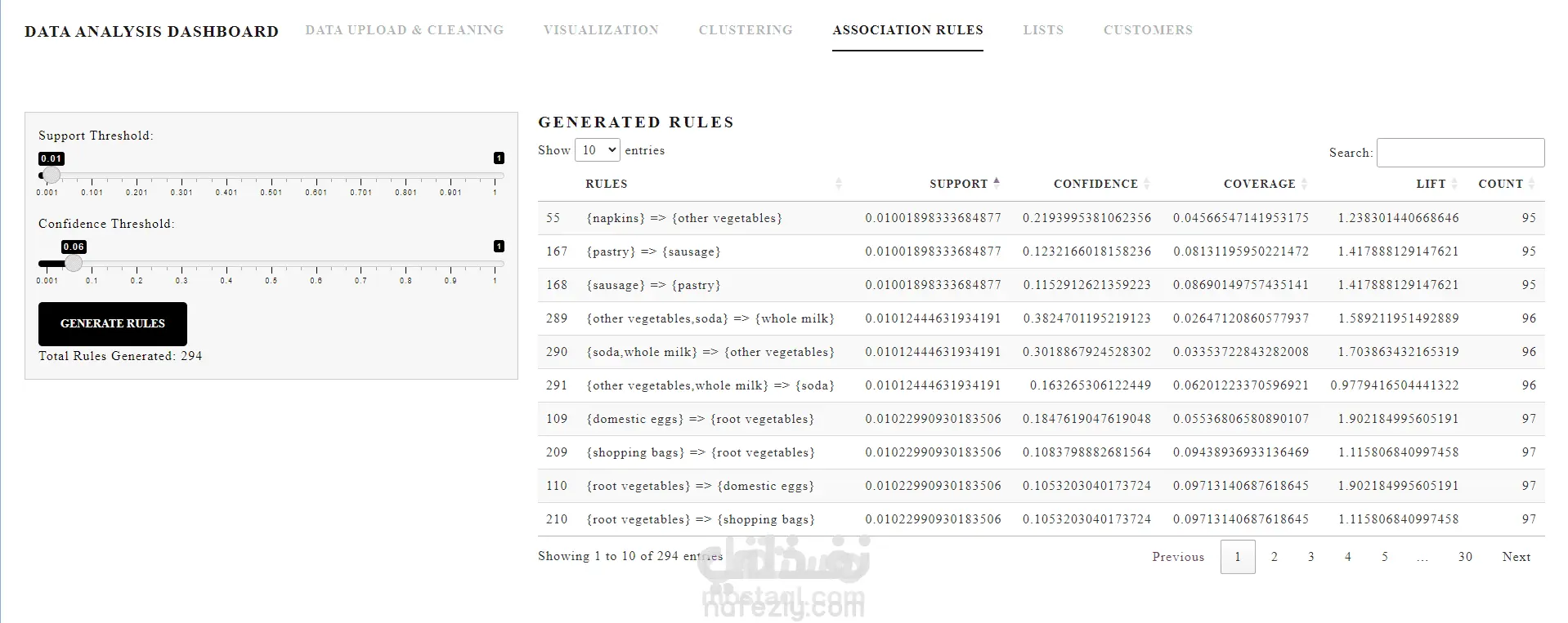 مشروع تحليل بيانات سلة مشتريات البقالة باستخدام R وShiny، يهدف إلى رفع ومعالجة بيانات المبيعات (CSV)، تنظيفها، واستخراج رؤى عن العملاء وسلوك الشراء. يتضمن المشروع لوحة تحكم تفاعلية لعرض الرسوم البيانية (الإنفاق حسب العمر، المدينة، ووسيلة الدفع)، تحليل العملاء وتجميعهم (Clustering)، واستخراج قواعد الترابط (Market Basket Analysis) لتحديد الأنماط بين المنتجات.