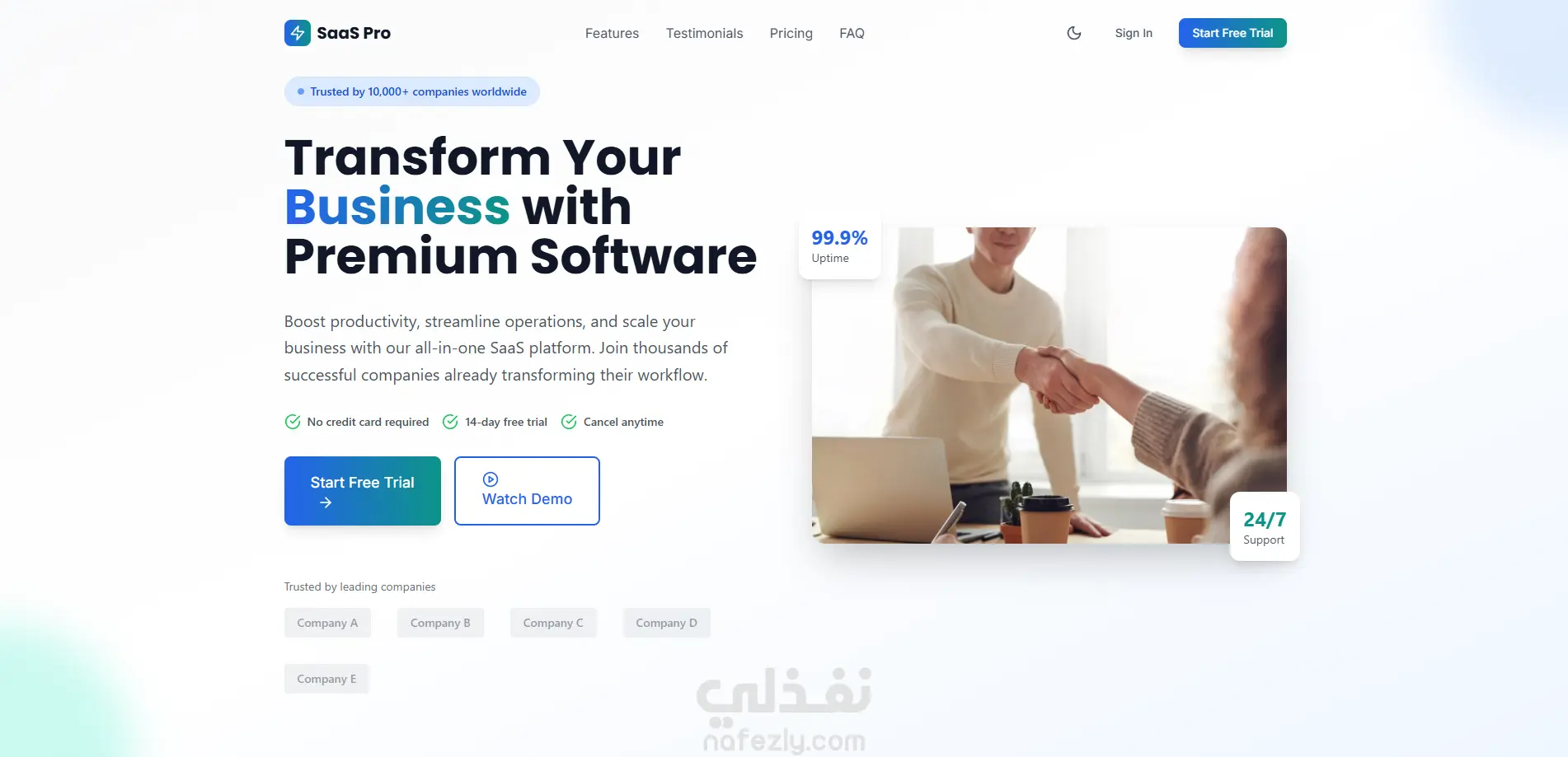 # المشروع مناسب كقالب أولي لأي مشروع SaaS أو شركة ناشئة تبحث عن حضور رقمي مميز واحترافي.