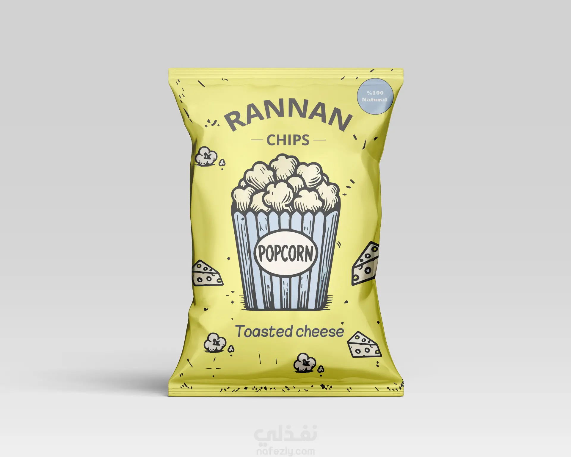 تصميم غلاف احترافي لمنتج فشار من علامة "RANNAN". تم تنفيذ التصميم بأسلوب عصري بسيط باستخدام ألوان ناعمة ورسومات توضيحية تعبّر عن المذاق (الجبنة المحمصة) بشكل جذّاب. الهدف من التصميم هو إبراز هوية المنتج بطريقة تلفت انتباه المستهلك على الرفوف وتعكس الطابع الطبيعي للمنتج. نوع العمل: تصميم غلاف منتج (Packaging Design) البرنامج المستخدم: Adobe Illustrator / Photoshop النمط: بسيط – مرح – مناسب لمنتجات الوجبات الخفيفة الألوان: الأصفر الفاتح مع لمسات رمادية وزرقاء اللغة المستخدمة في التصميم: الإنجليزية
