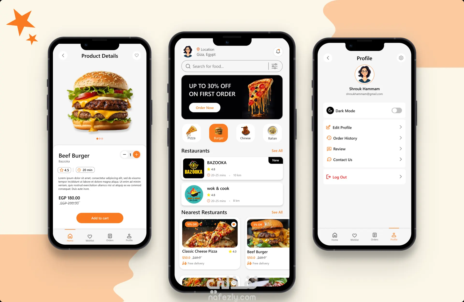 تصميم تطبيق Food Delivery لتوصيل الطلبات، يهدف لتقديم تجربة سهلة وسريعة للمستخدمين مع واجهة عصرية وجذابة. مميزات التطبيق: واجهة بسيطة وواضحة لعرض المطاعم والوجبات. إمكانية البحث والتصفية حسب نوع الأكل. عربة تسوق سهلة الاستخدام. متابعة حالة الطلب لحظة بلحظة. توفير خيارات دفع متعددة (أونلاين / عند الاستلام). طريقة التنفيذ: دراسة رحلة المستخدم (User Journey) وتحديد احتياجاته. رسم المخططات الأولية (Wireframes) لتوضيح خطوات الطلب. تصميم واجهات مستخدم تفاعلية باستخدام Figma و XD. إعداد Prototype لتجربة التطبيق بشكل عملي قبل التطوير. التركيز على تجربة مستخدم سلسة (UX) مع هوية بصرية متناسقة.