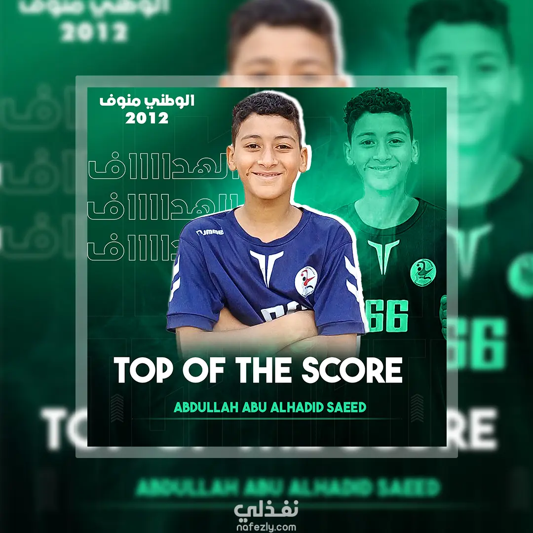 تصميم منشورات رياضية احترافية لعدد من اللاعبين ، يتم فيها إبراز صورة اللاعب بأسلوب جذاب مع دمج الألوان الخاصة بالفريق وإضافة عناوين مميزة مثل Top of the Score أو Player of the Match.