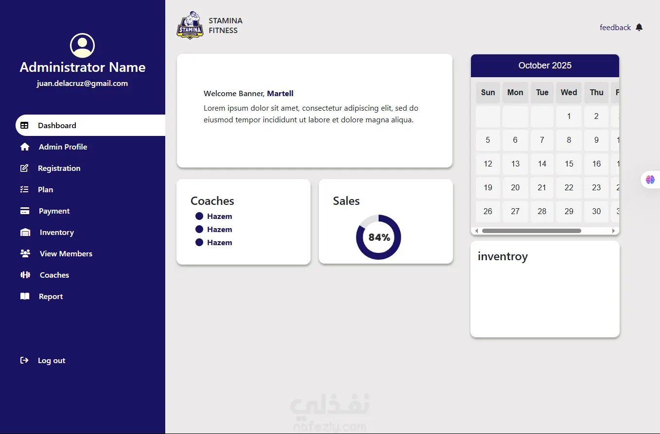نظام ويب متكامل لإدارة صالات الجيم والمراكز الرياضية. يساعد أصحاب الجيم على إدارة الأعضاء، الاشتراكات، الحضور، المدربين، والمدفوعات من لوحة تحكم واحدة سهلة الاستخدام وبتصميم عصري ومتجاوب.