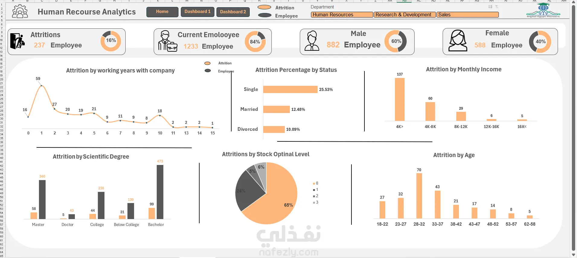 تحليل بيانات الموارد البشرية لقياس معدل الاستقالات (HR Attrition Analysis Dashboard)