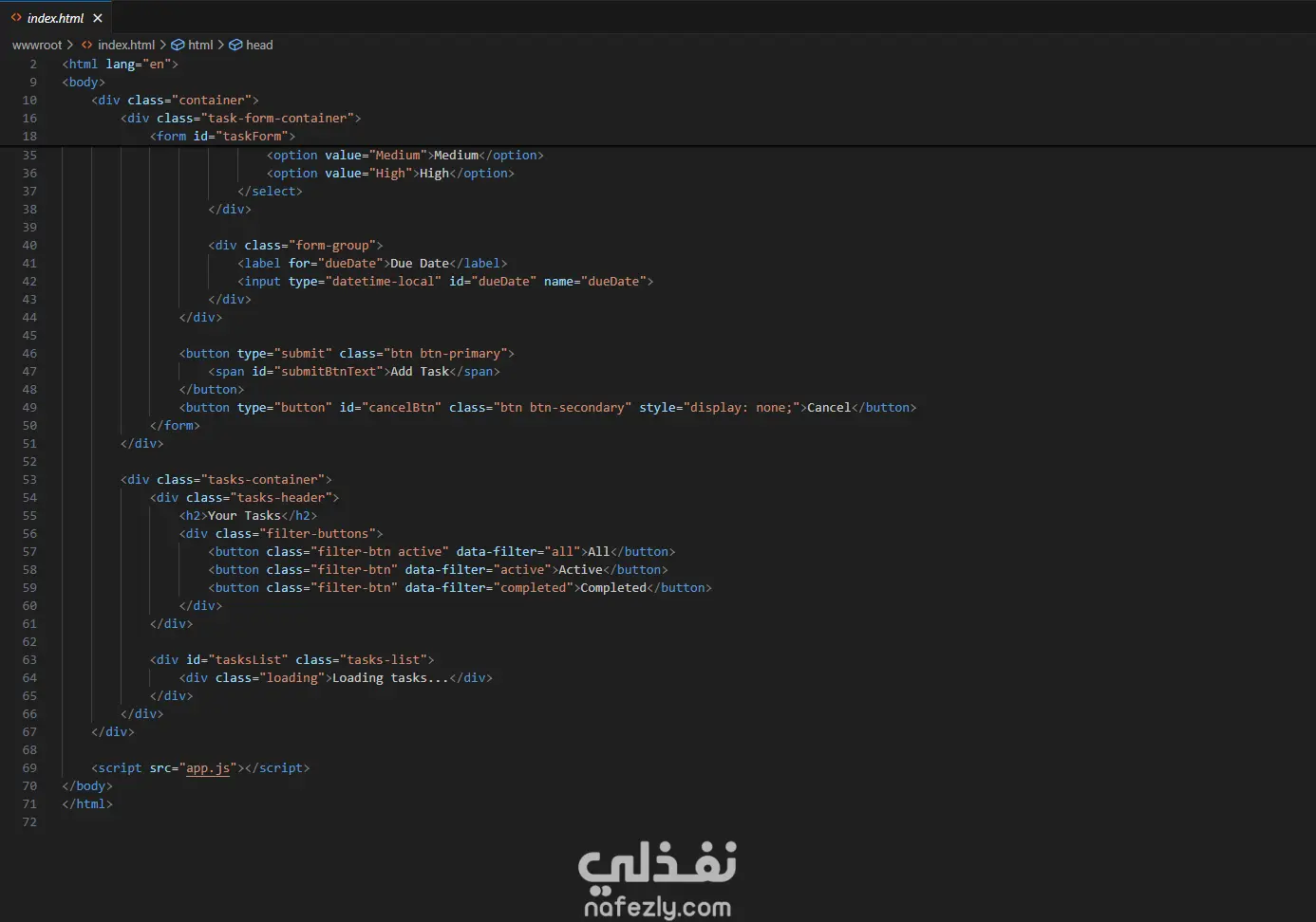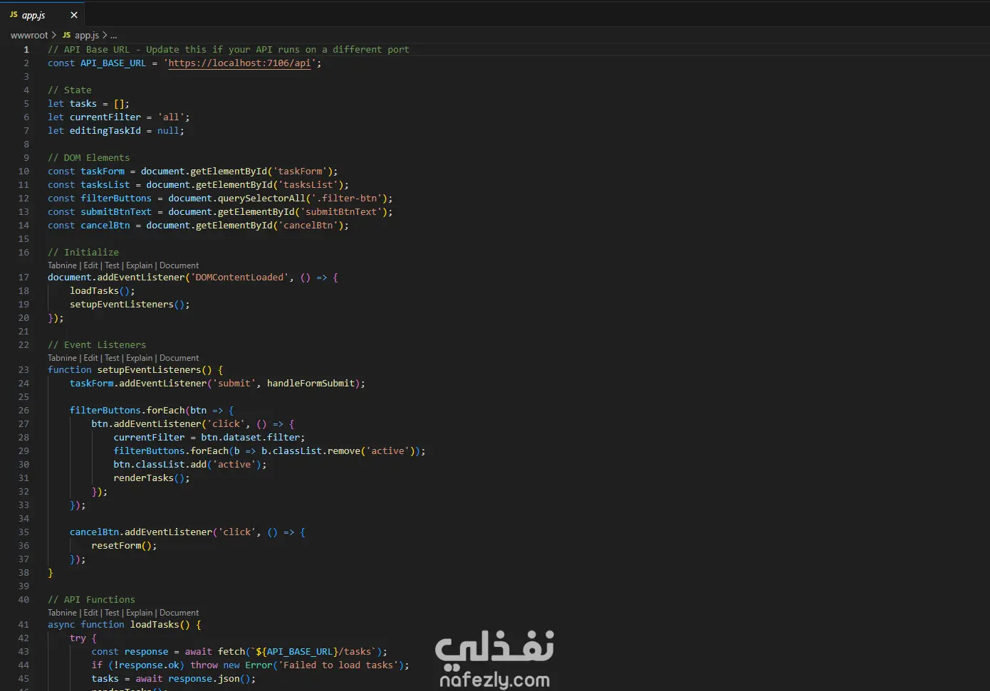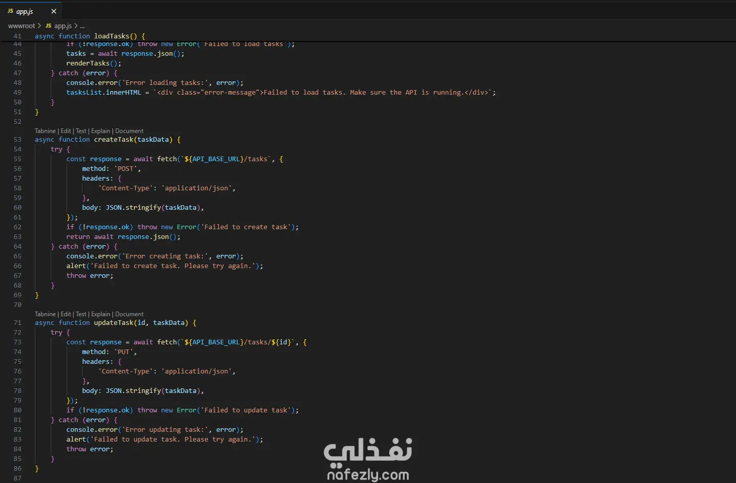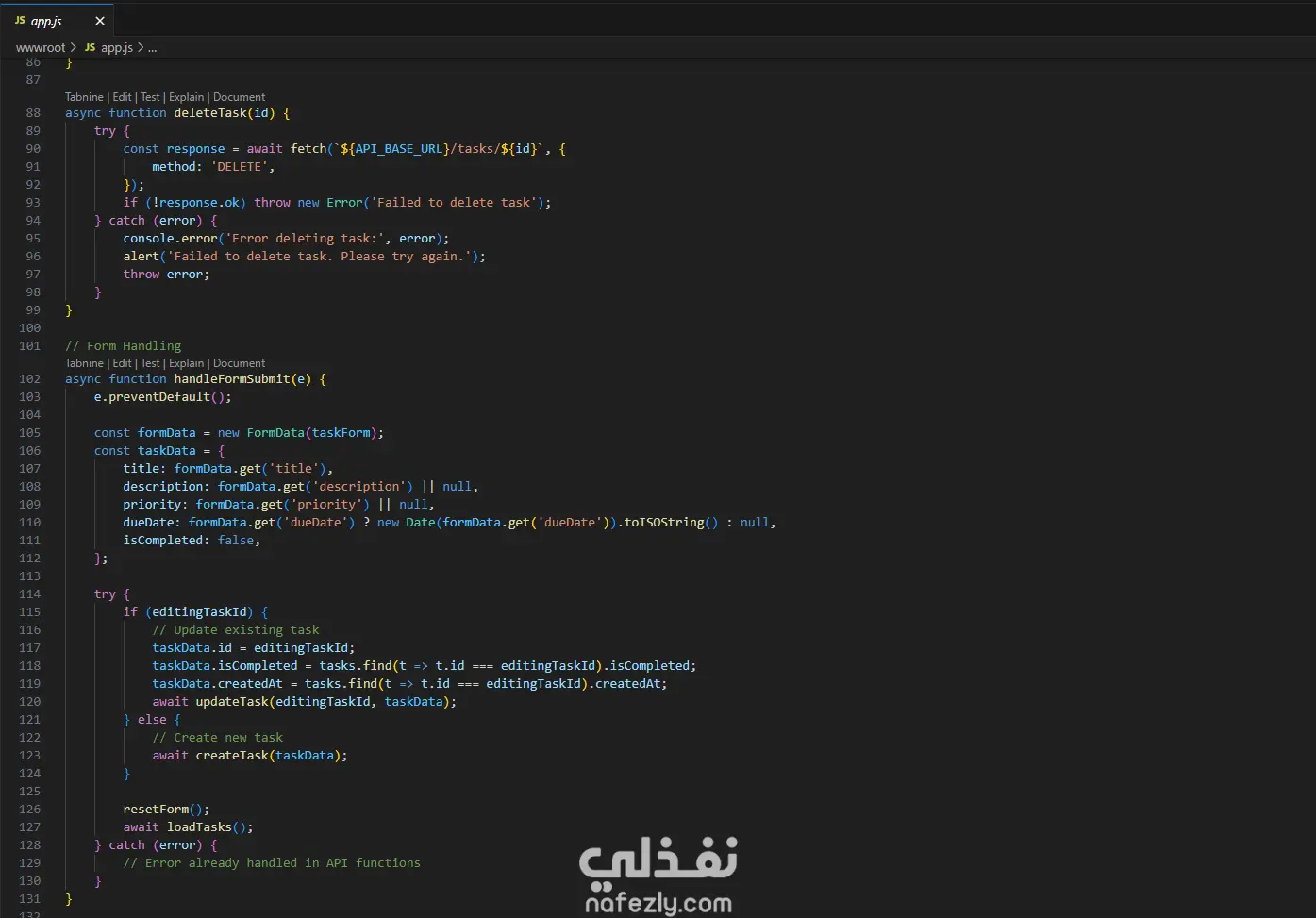 مشروع واجهة نظام إدارة مهام (Task Management System Front-End) هو تطبيق ويب تفاعلي تم تطويره باستخدام HTML وCSS وJavaScript لتمكين المستخدمين من إدارة مهامهم اليومية بسهولة. يمكن للمستخدم إضافة المهام وتحديد الأولوية وتاريخ الاستحقاق، بالإضافة إلى تعديل المهام أو حذفها، مع إمكانية تحديد حالة كل مهمة (مكتملة أو نشطة). الواجهة مصممة لتكون بسيطة وسلسة في الاستخدام، مع دعم فلترة المهام حسب الحالة (الكل، النشطة، المكتملة)، ويتم تحديث البيانات بشكل فوري من خلال الاتصال بـ RESTful API خاص بالخادم الخلفي. المشروع مناسب كجزء من نظام متكامل لإدارة المهام أو كنموذج لتطبيقات CRUD تفاعلية في الويب.