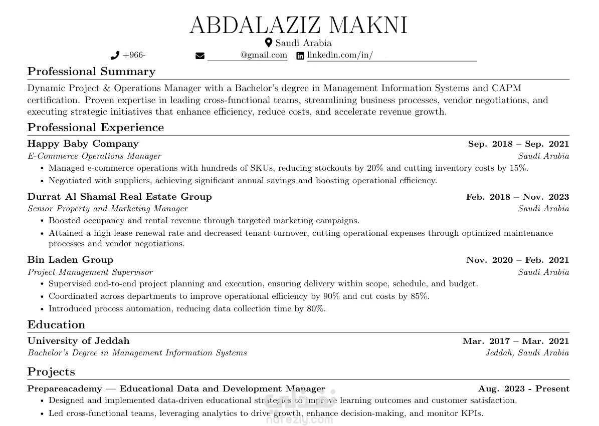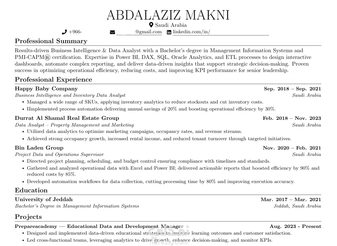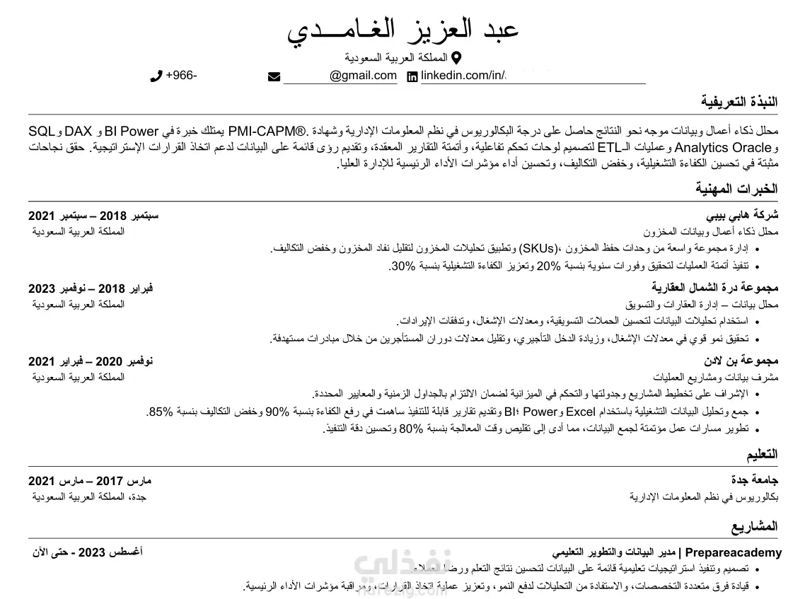إعداد سيرة ذاتية احترافية بالعربية والإنجليزية لعميل سعودي