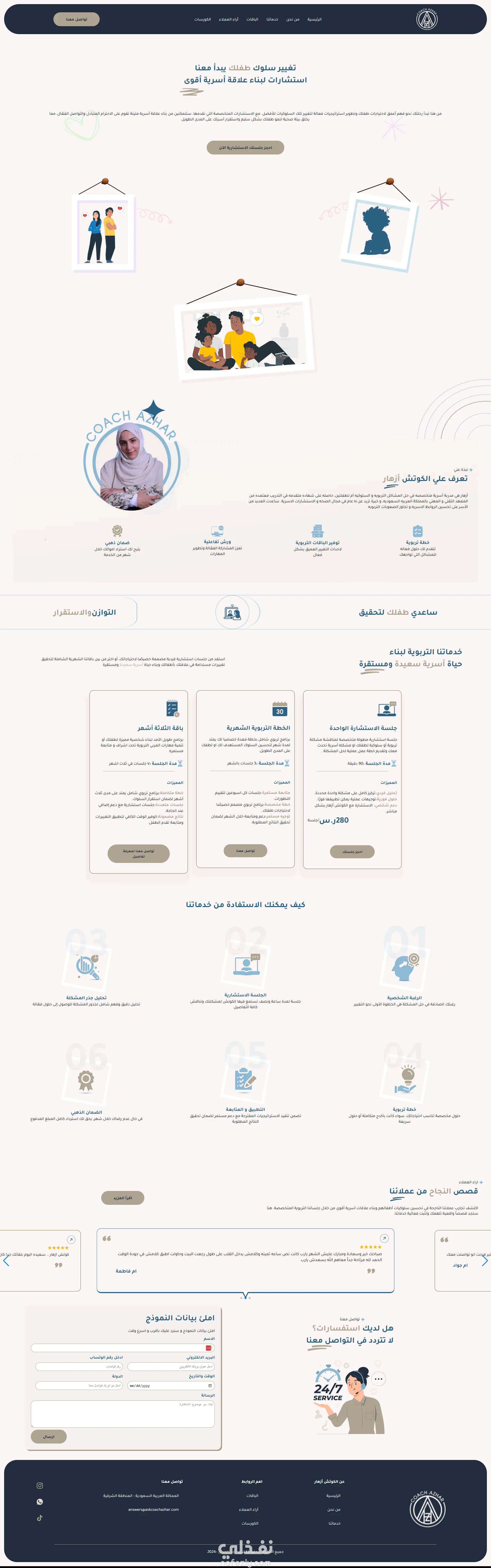 تم انشاء صفحة هبوط لكوتش ازهار لتدريب سلوكيات الطفل واستشارات اسرية