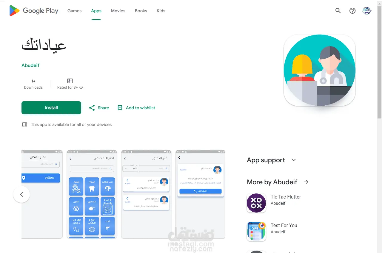يمكنك من هذا التطبيق ان تري مواعيد الدكتور المتاح في الاماكن الموجوده في تطبيق ويمكن معرفه المكان ورقم للاستفار عن الدكتور