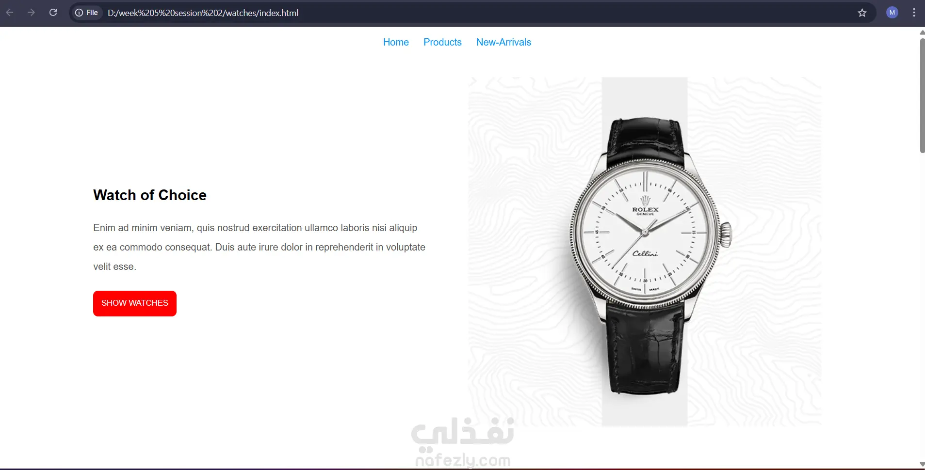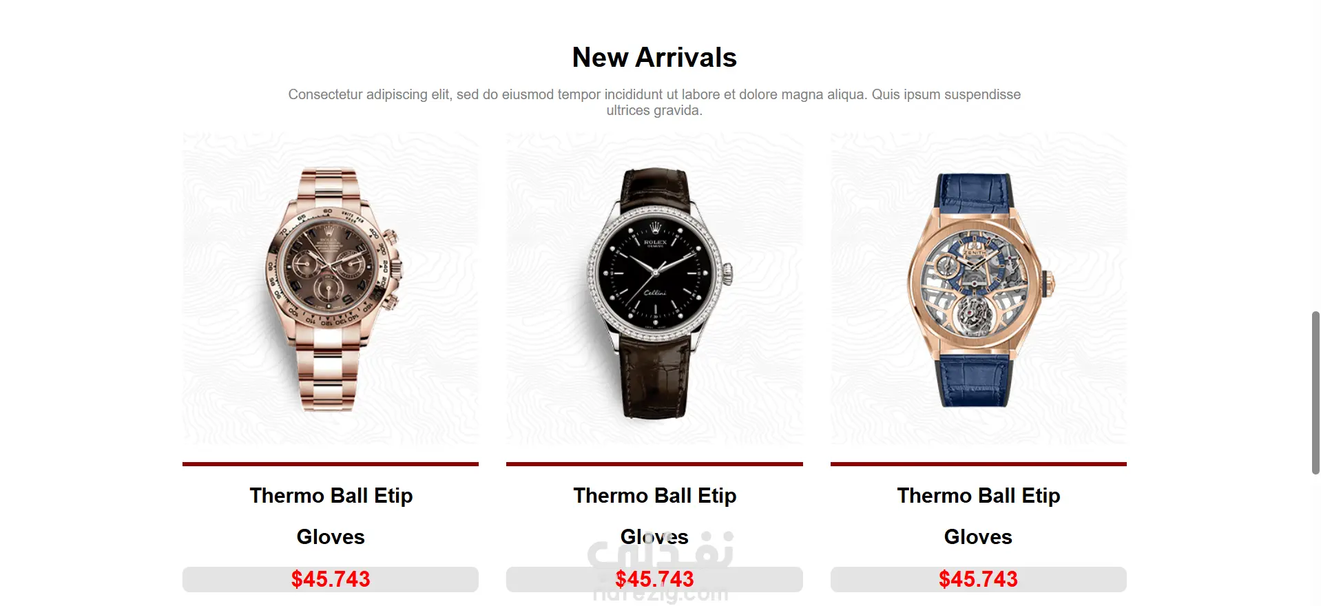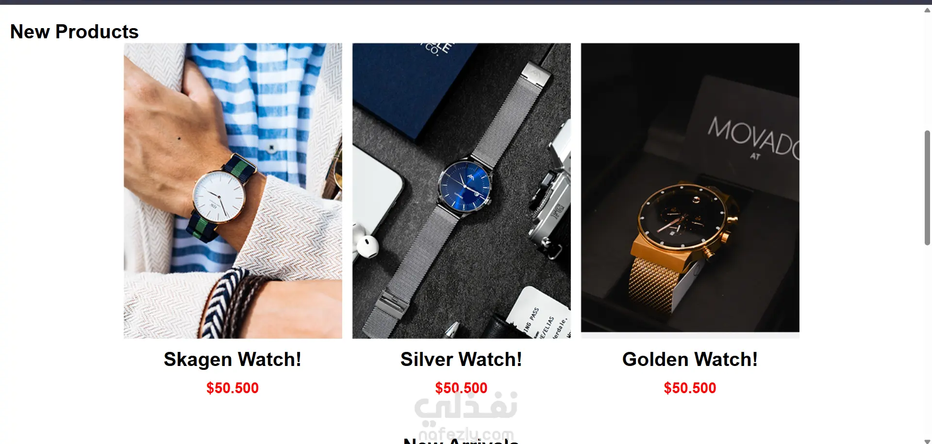 قمت بتصميم وتطوير موقع تجريبي لعرض منتجات ساعات باستخدام HTML وCSS فقط. الموقع يحتوي على صفحة رئيسية تعرض شعارات وصور للساعات، مع أقسام مثل "المنتجات الجديدة" و"الأكثر مبيعًا". تم التركيز على تنسيق التصميم، الألوان، وتوزيع العناصر بشكل متناسق ومتجاوب مع مختلف أحجام الشاشات. الهدف من المشروع هو عرض مهاراتي في بناء واجهات مستخدم بسيطة وجذابة دون استخدام JavaScript أو أي إطار عمل خارجي. التقنيات المستخدمة: HTML CSS (Flexbox & Grid) تصميم متجاوب (Responsive Design)