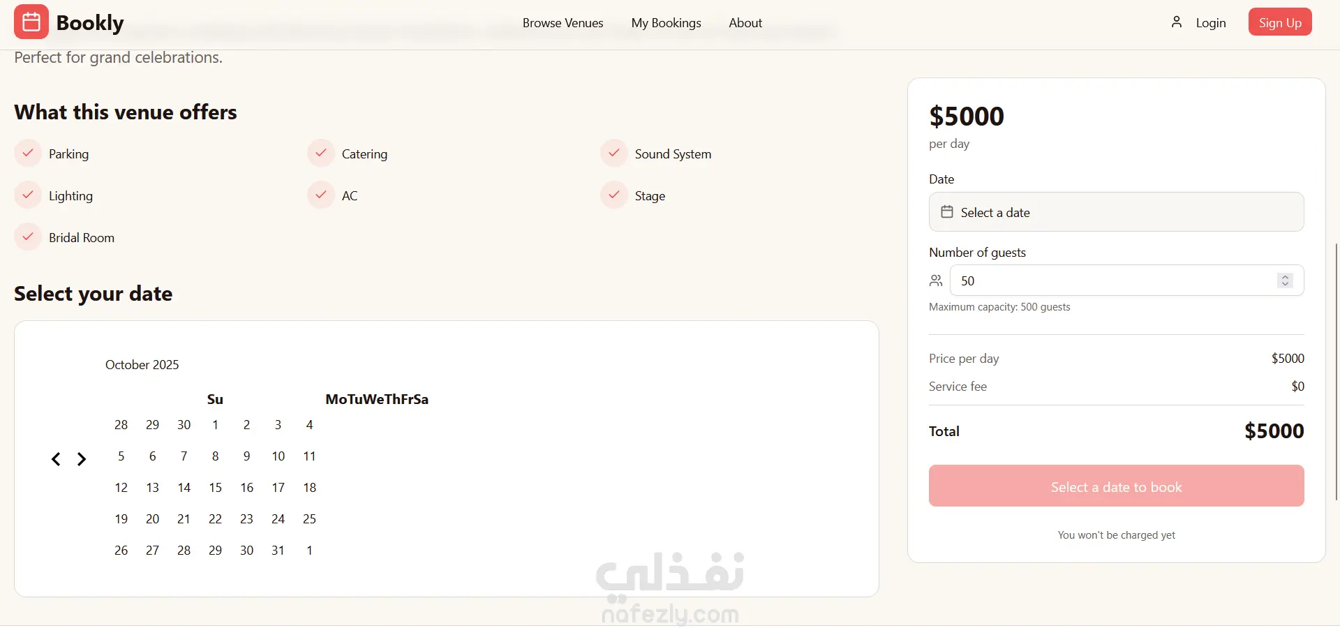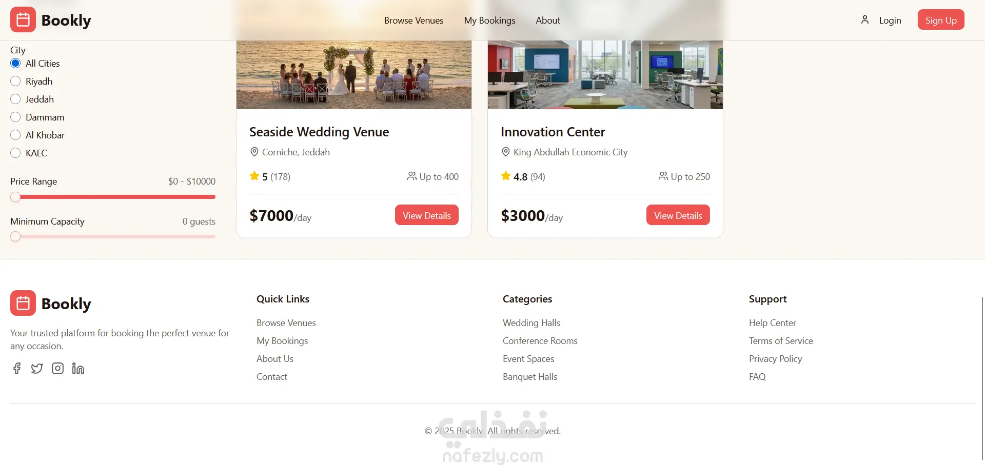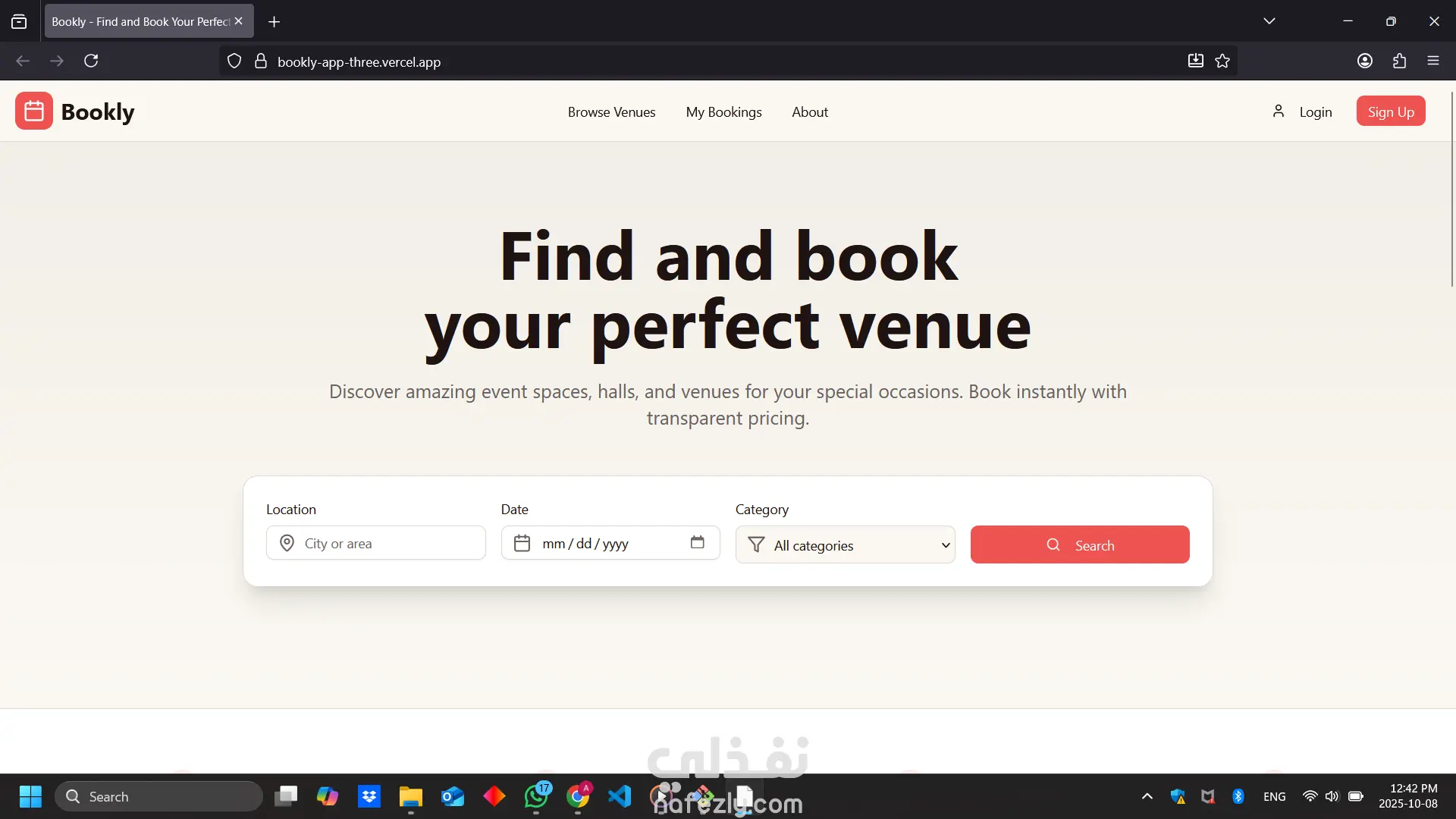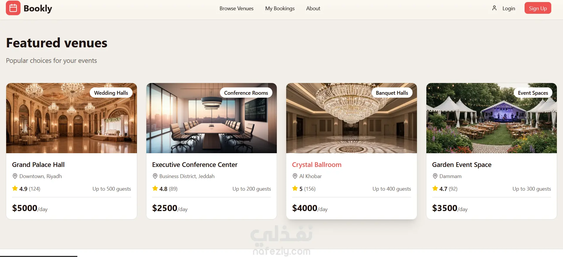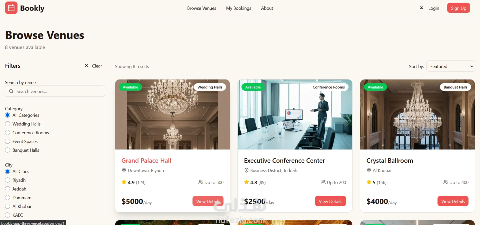 A modern Booking Website built with Next.js, React, and TypeScript. The platform provides a seamless and responsive user experience for booking venues or events. It features dynamic routing, reusable UI components, and optimized performance. Designed with scalability and clean architecture in mind, making it both elegant and efficient.