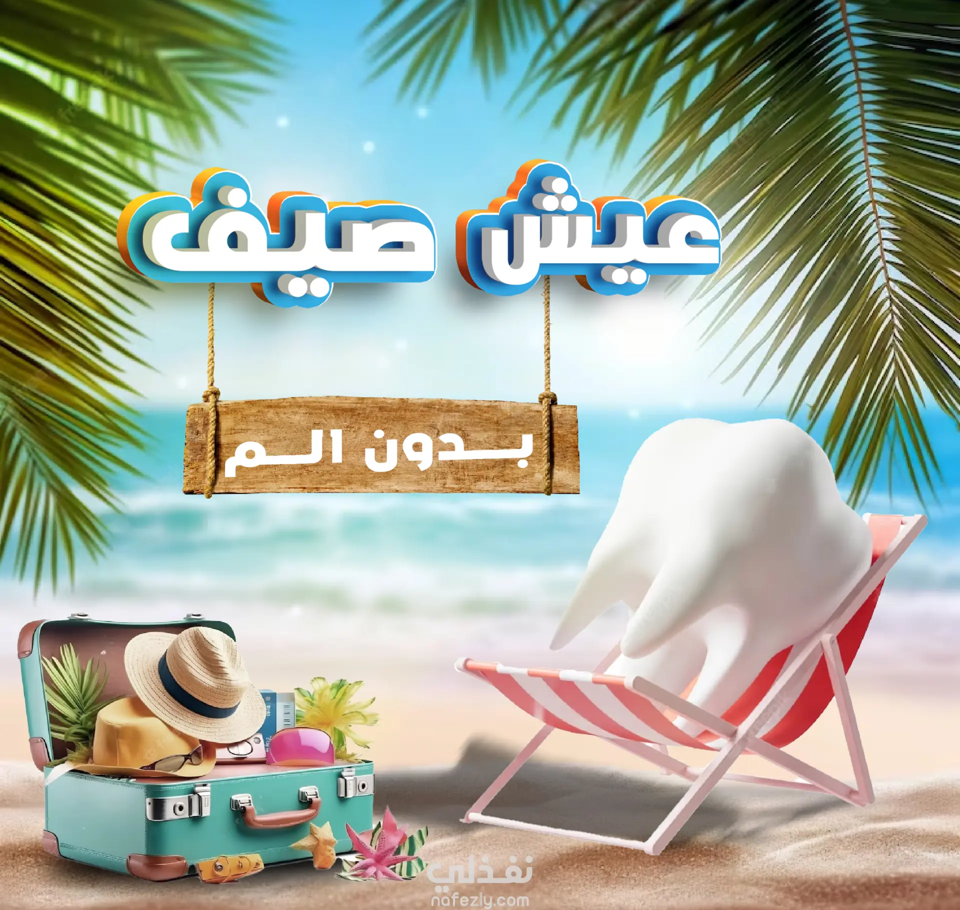 تصميم بصري جذاب لإعلان لعياده اسنان يهدف لترويج تجربة ممتعة وخالية من الألم أو المتاعب خلال الصيف.