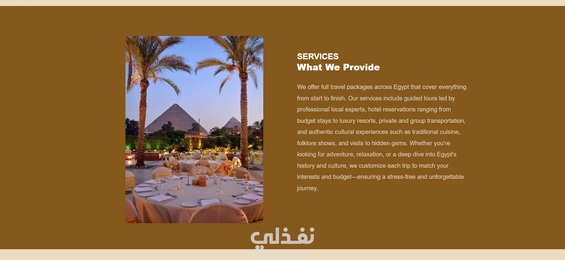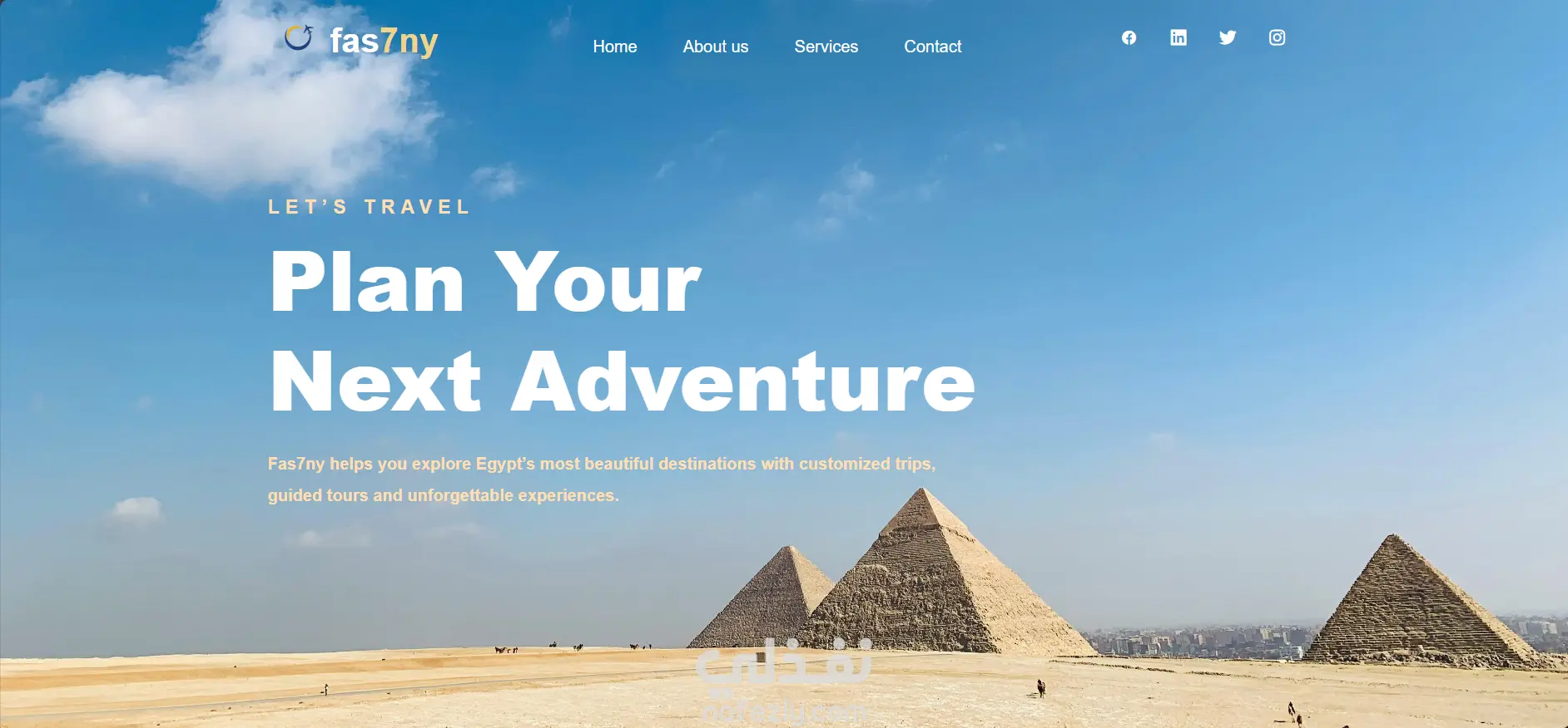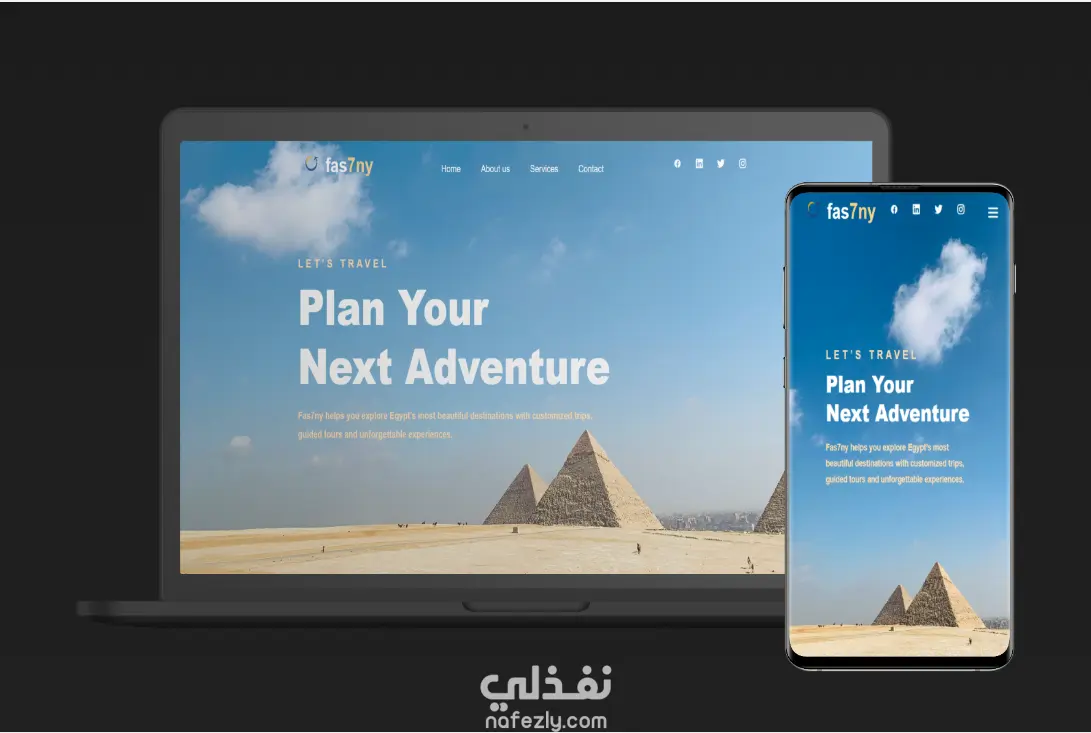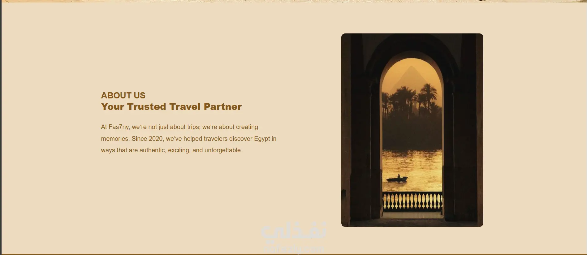 صفحة تعريفية (Landing Page) لشركة سياحة وسفر، مصممة باستخدام HTML / CSS / JavaScript بتصميم متجاوب (Responsive) يعمل على جميع الأجهزة.