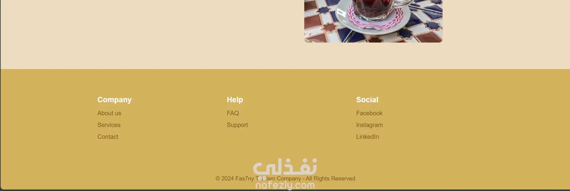 فوتر يحتوي روابط التواصل الاجتماعي.
