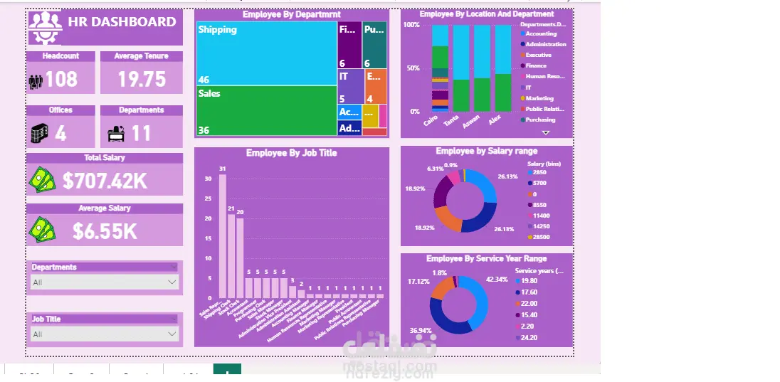 تم تطوير هذه اللوحة التفاعلية باستخدام Power BI لتمكين إدارات الموارد البشرية من تحليل بيانات الموظفين واتخاذ قرارات استراتيجية قائمة على البيانات بدقة وفعالية.توفر الداشبورد نظرة شاملة ومفصلة على مختلف جوانب القوى العاملة داخل المؤسسة، مع واجهة مرئية سهلة الاستخدام وتفاعلية عاليةمما يساعد على: