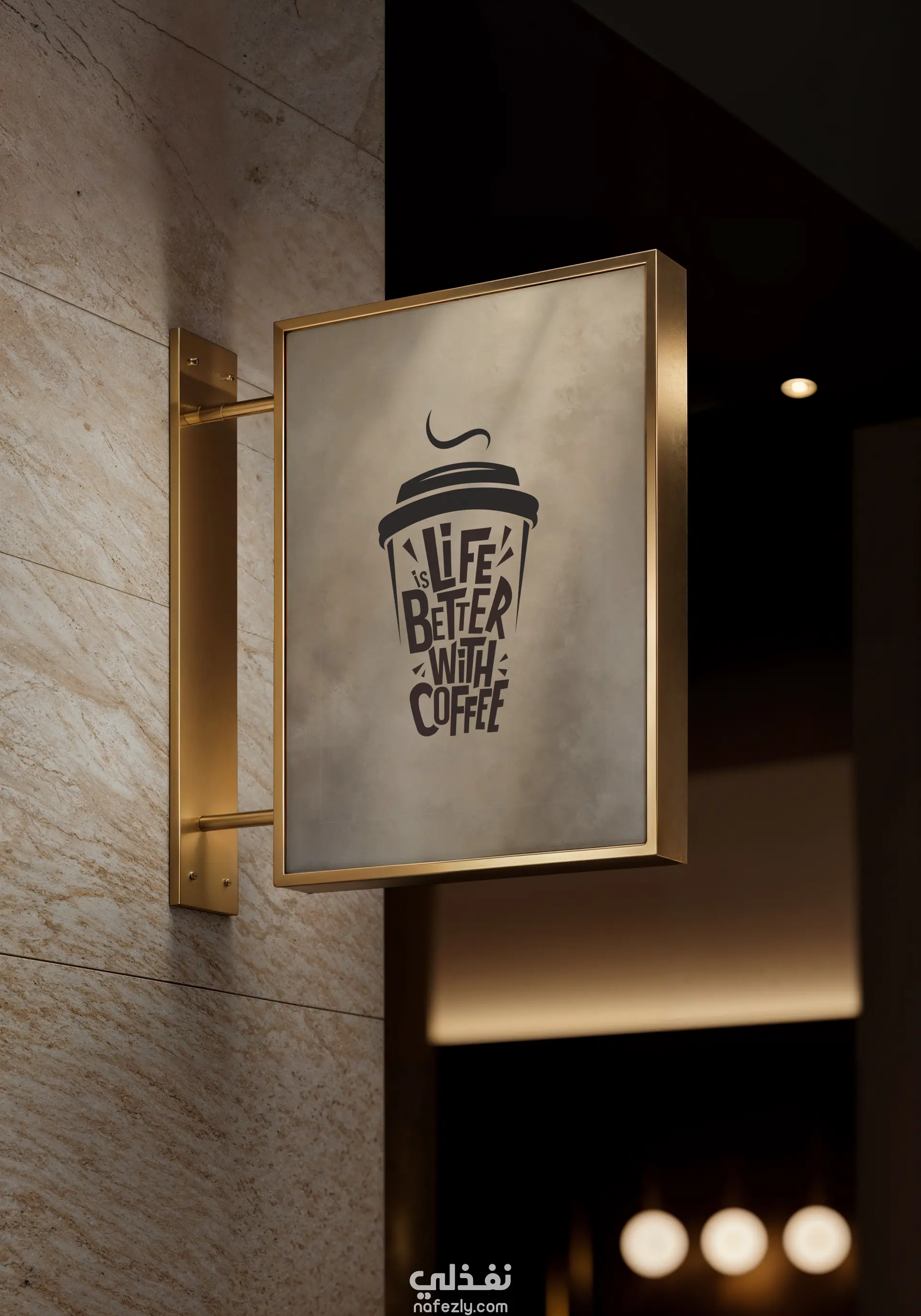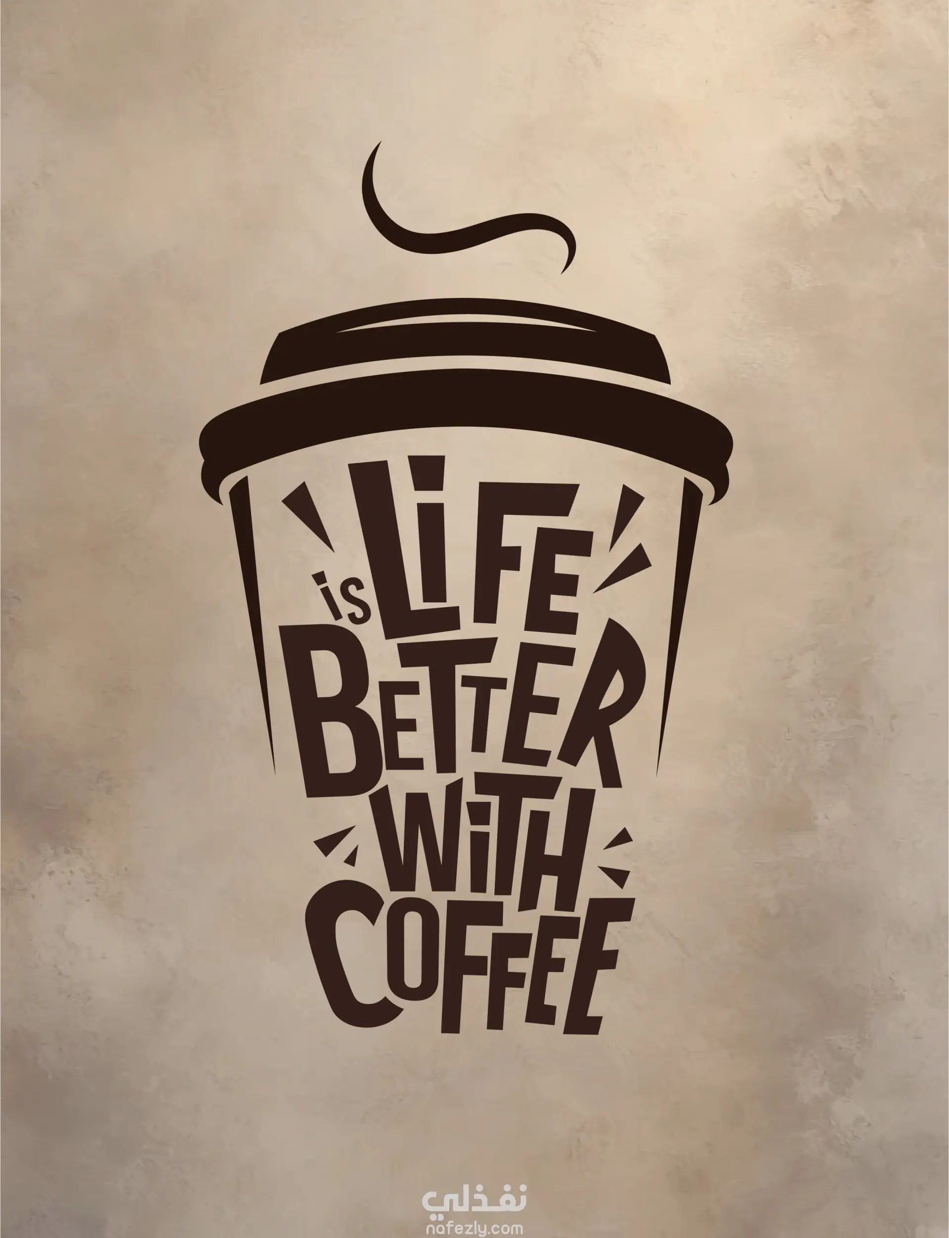 تصميم تايبوغرافي على شكل كوب قهوة يحمل عبارة “الحياة أجمل مع القهوة.”