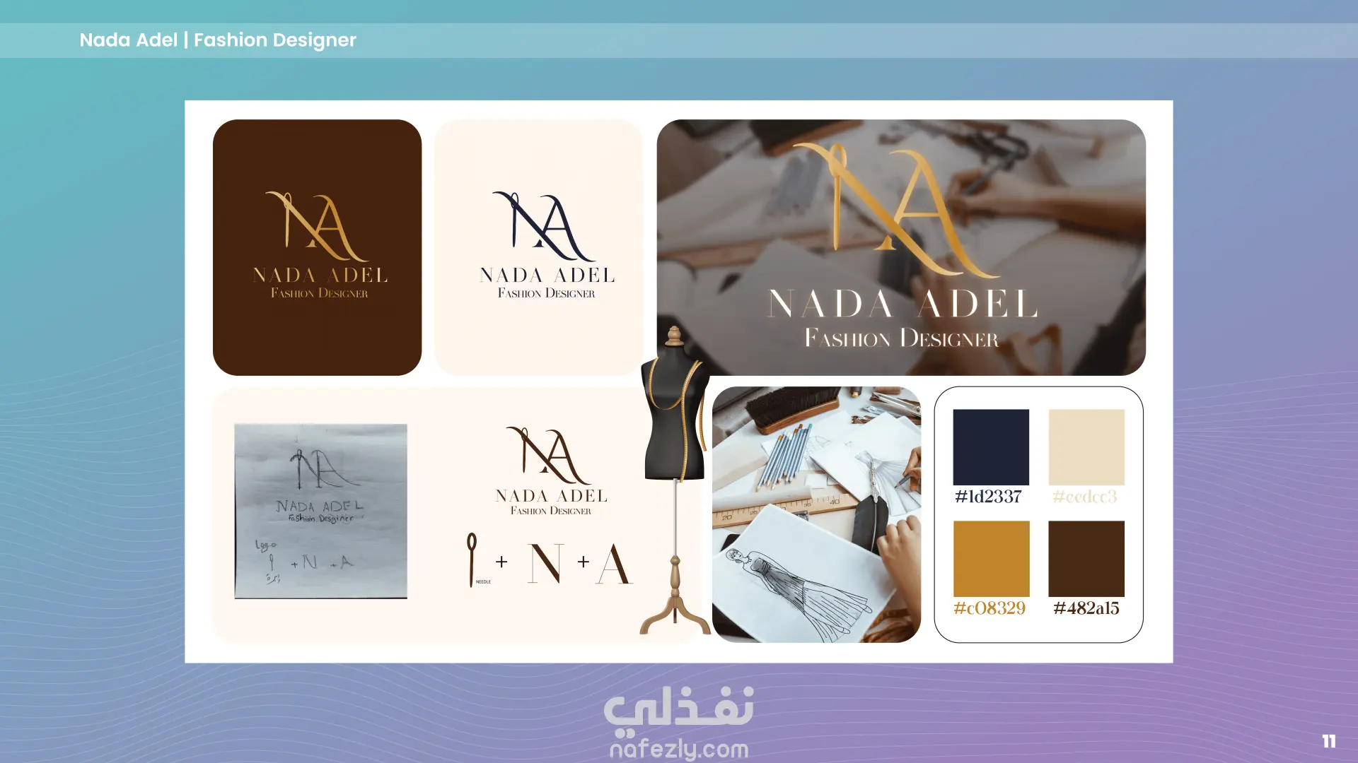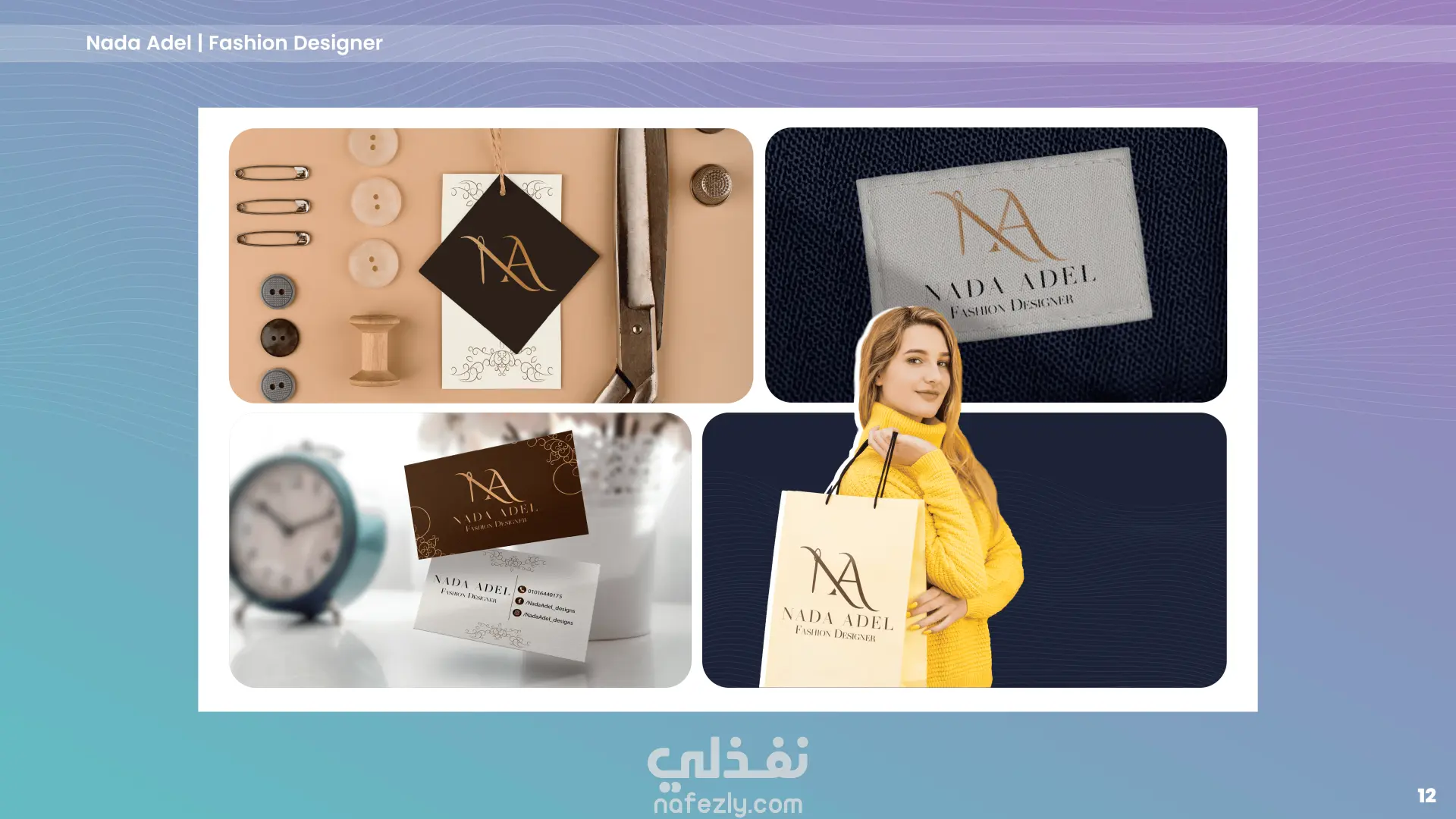 صممتُ هوية بصرية لمصممة أزياء، حيث كان الهدف هو خلق علامة تجارية تعبر عن الأناقة والإبداع. تم تصميم شعار فاخر يجمع بين الحرفين "N" و "A" مع عناصر بسيطة تعكس عالم الموضة، مع تطبيق الهوية على مواد تسويقية مختلفة.