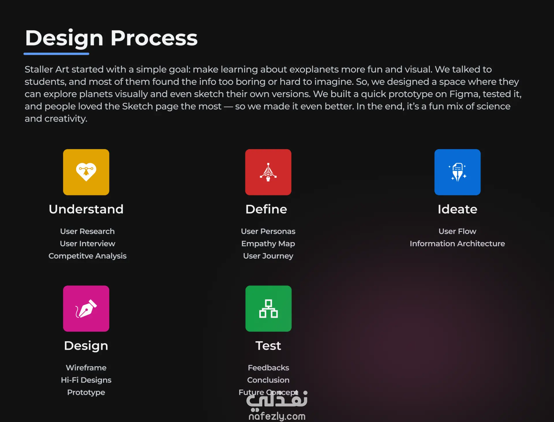 استلام فكرة الموقع والمحتوى المطلوب. تحليل أهداف المشروع لتحديد الأسلوب التصميمي المناسب. تصميم تخطيط مبدئي (Wireframe) لتوزيع العناصر. تنفيذ التصميم النهائي بألوان وهوية متناسقة. مراجعة وتعديلات نهائية قبل التسليم. تسليم ملف Figma منظم مع رابط للمعاينة التفاعلية.