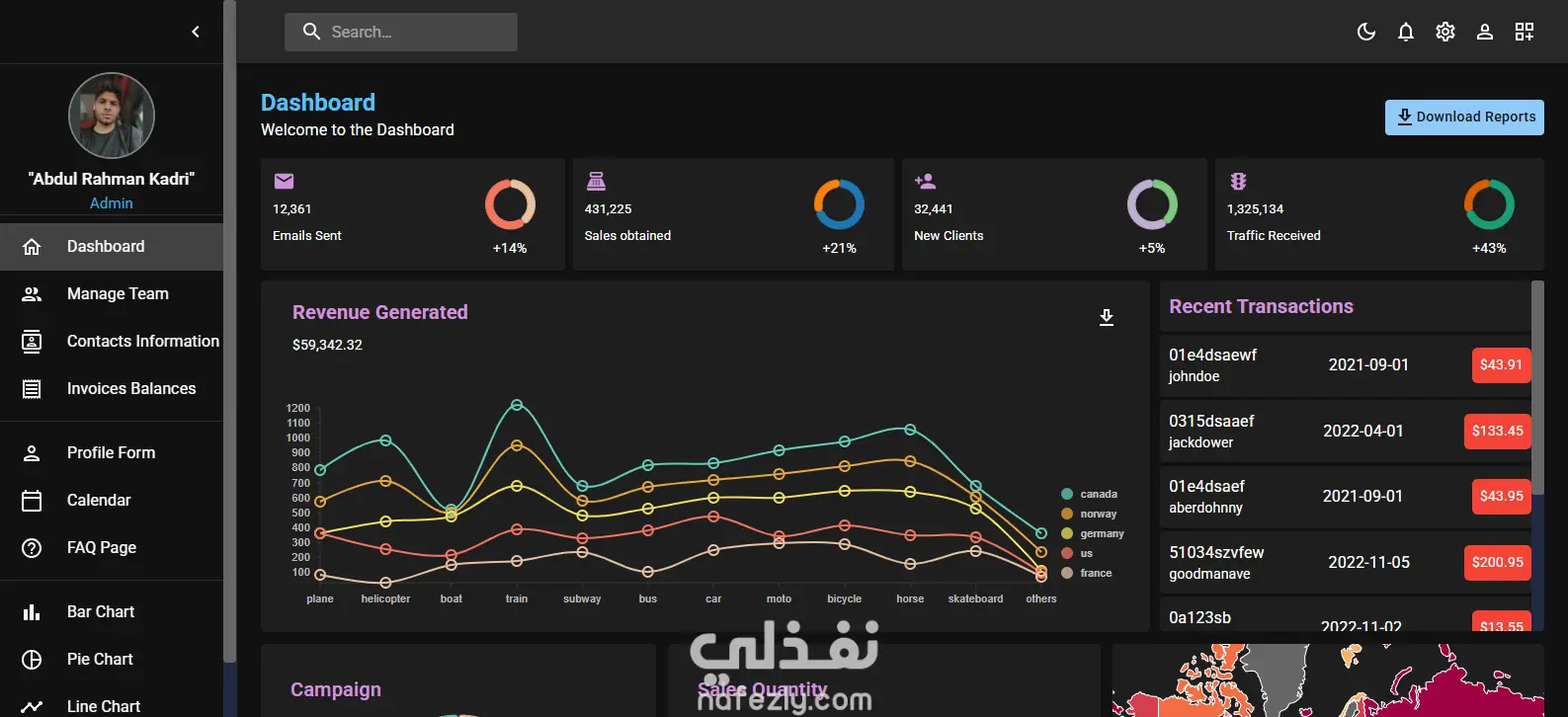 “Admin Dashboard” هو لوحة تحكم إدارية تم بناؤها باستخدام React وواجهة جميلة ومتناسقة باستخدام MUI. تم استخدام Formik لإدارة النماذج وتبسيط عملية التحقق من البيانات (validation) والتحكم في الحالة (form state) بطريقة منظمة وسلسة. المشروع يعرض واجهة عرض بيانات، عناصر تحكم وتنقل، وربما استمارات لإضافة أو تعديل بيانات الإدارة — كل ذلك بتصميم عصري ومتجاوب.