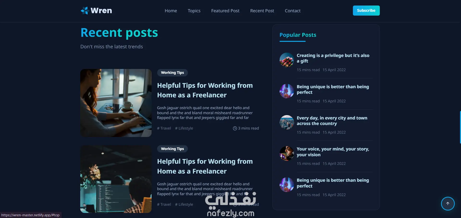A fully responsive personal blog website built with HTML, CSS, and JavaScript, offering a clean and modern design for writing and reading blog posts.