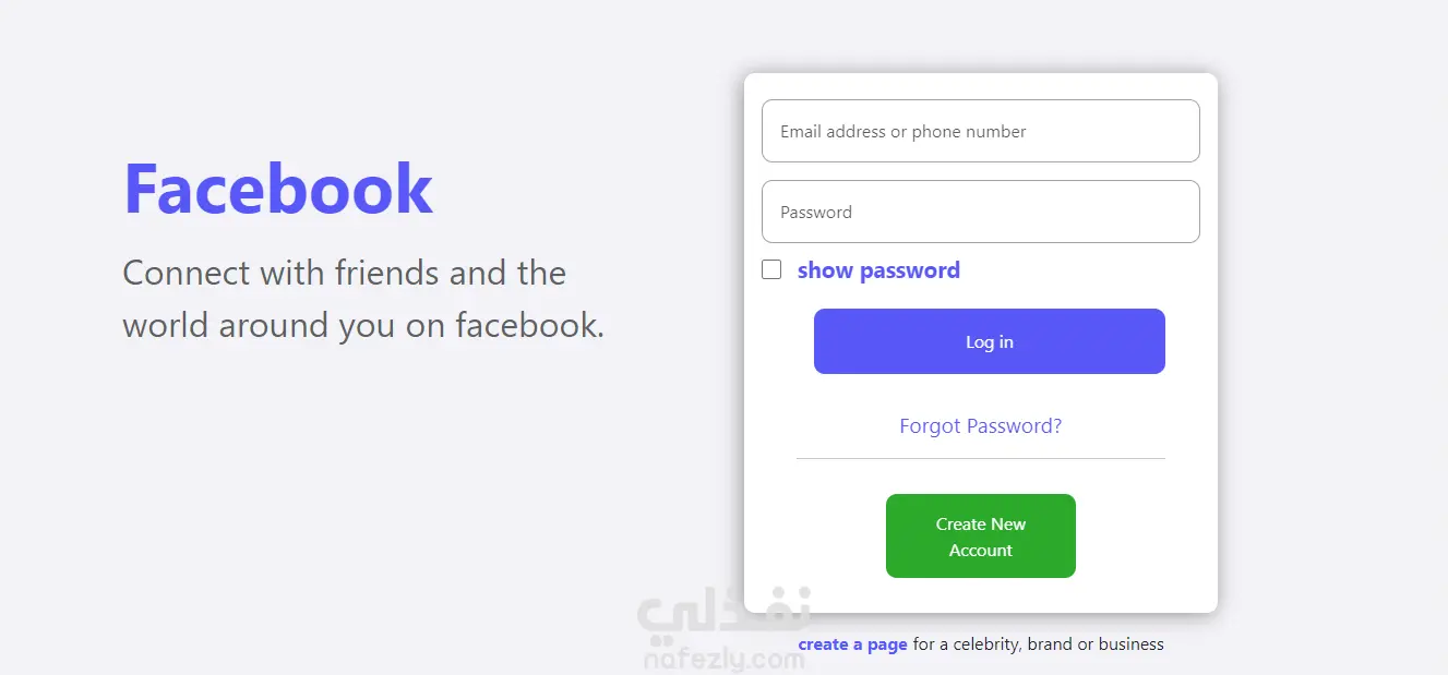 قمتُ بتطوير صفحة تسجيل دخول مشابهة لتصميم Facebook باستخدام HTML5, CSS3