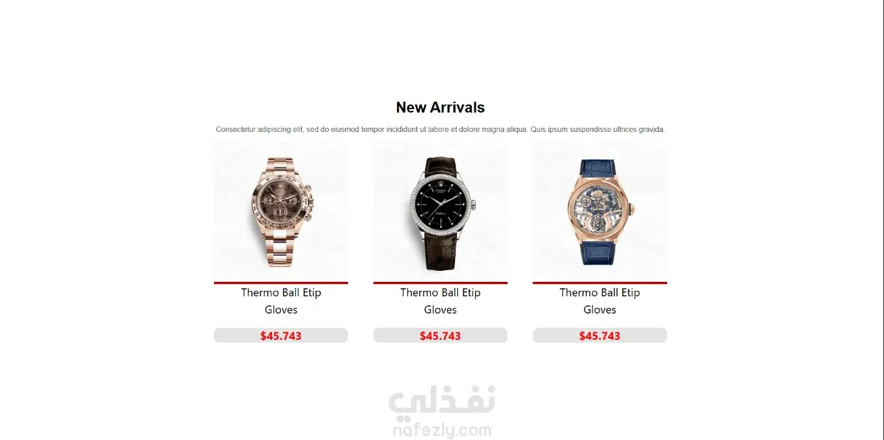 هذا الموقع مخصص لعرض وبيع الساعات الفاخرة بتصميم أنيق وبسيط يركز على إبراز المنتجات. الموقع مكوّن من 4 سكاشن رئيسية: