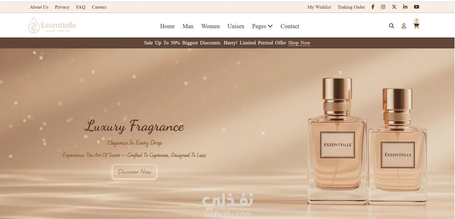 مشروع Éssentielle-Purfumes هو تجربة رقمية متكاملة قمت ببنائها من الصفر — بدايةً من تصميم واجهة المستخدم (UI)، مرورًا بتخطيط تجربة المستخدم (UX)، وحتى تنفيذ الواجهة الأمامية بالـ HTML5 و CSS3. أنا من صمّمت كل جزء في الواجهة: من الهيدر والـ Hero Section، إلى أقسام المنتجات، التستيمونيالز (آراء العملاء)، والمدونة. اخترت وصمّمت كل صورة داخل الأقسام بعناية لتعبّر عن الفخامة والهوية البصرية لعالم العطور. ركّزت على التفاصيل الجمالية (الألوان، التايبوغرافي، التباعد) بحيث توصل إحساس الرفاهية للزائر. نظّمت الكود بأسلوب نظيف وسهل التطوير مستقبلاً. هذا المشروع لا يُظهر فقط مهاراتي في الـ Front-end، بل يبرز أيضًا قدرتي على التفكير كـ UI/UX Designer وتحويل فكرة إلى تجربة مستخدم متكاملة وأنيقة. هدفي أن يخرج الزائر من الموقع بانطباع أن كل شيء فيه محسوب بعناية ليقدّم إحساس الفخامة.