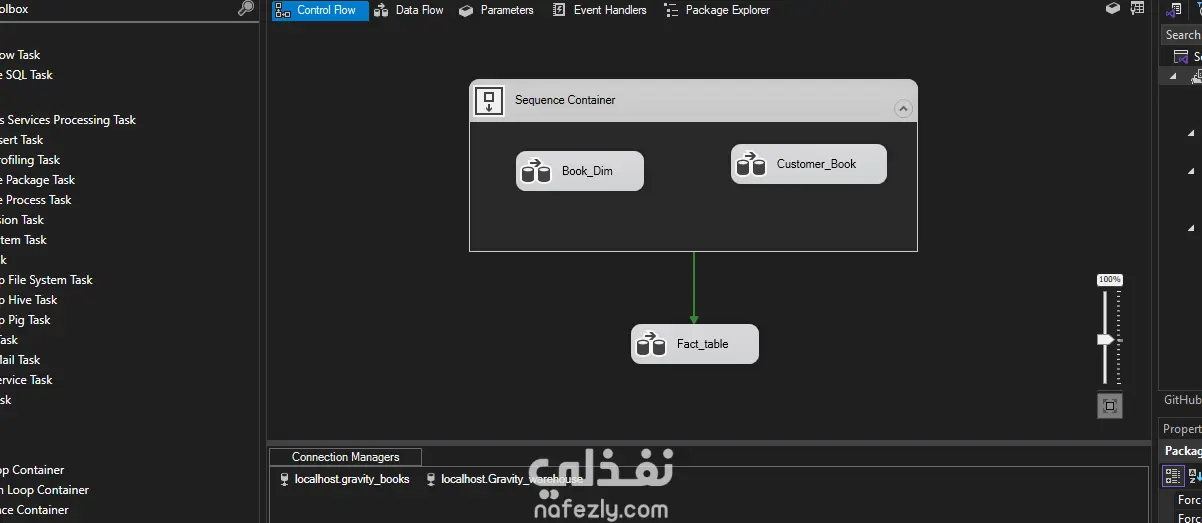 تصميم وتنفيذ ETL Pipeline باستخدام SSIS – قاعدة بيانات Gravity Books في هذا المشروع قمتُ بتحويل قاعدة بيانات تشغيلية (Operational Database) تسمى Gravity Books إلى بيئة Data Warehouse منظمة باستخدام SQL Server Integration Services (SSIS). شملت خطوات العمل: استخراج البيانات من قاعدة Gravity Books. تنظيف وتحويل البيانات وإجراء عمليات lookup لإعداد المفاتيح surrogate. تحميل البيانات إلى نموذج star schema يتضمن جداول أبعاد مثل Customer وBook وDate، بالإضافة إلى جدول حقائق تحليلي (Fact Table). النتيجة: بيئة بيانات تحليلية جاهزة لتوليد تقارير دقيقة وسريعة، تعكس خبرتك الفعلية في هندسة البيانات (Data Engineering) وبناء حلول ETL متكاملة.