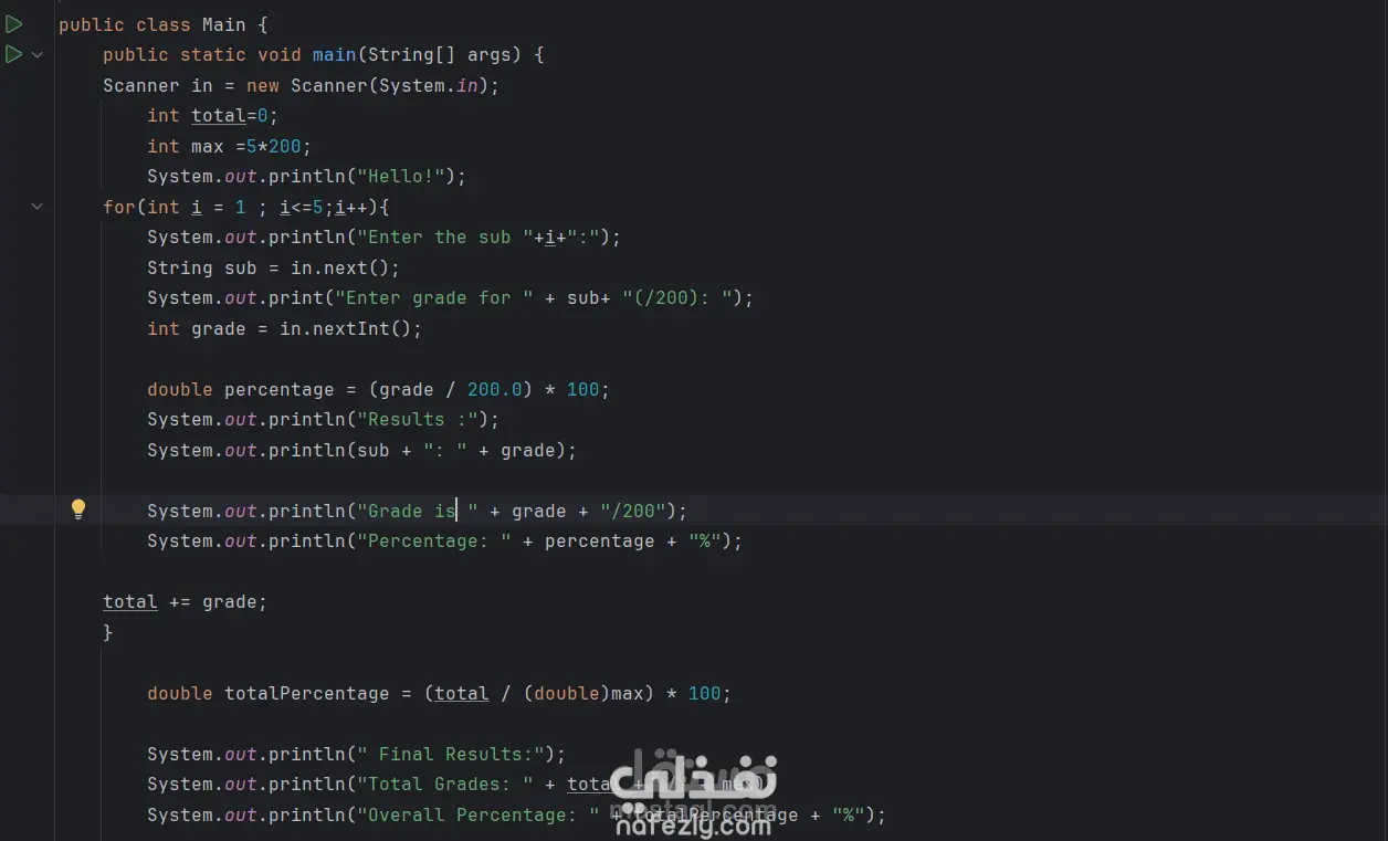 برنامج احتساب الدرجات والنسبة المئوية للطلاب باستخدام Java