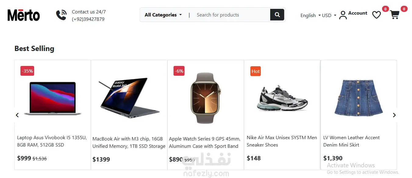 موقع تسوّق إلكتروني متكامل مصمم لتقديم تجربة شراء سهلة وسريعة للمستخدمين. يتميز بتصميم عصري وواجهة استخدام واضحة تسمح للعملاء بتصفح المنتجات بسهولة، إضافتها لعربة التسوق، وإتمام عملية الشراء بشكل آمن وسلس.