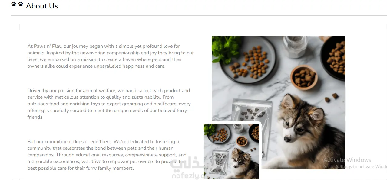 يوفر مجموعة واسعة من المنتجات مثل الأغذية الصحية، الألعاب الممتعة، ومستحضرات العناية اليومية، بالإضافة إلى نصائح وخدمات تساعدك على رعاية حيوانك الأليف بسهولة واهتمام.