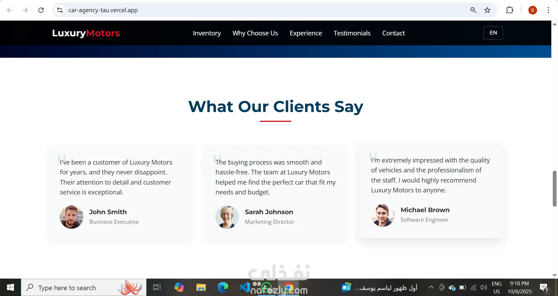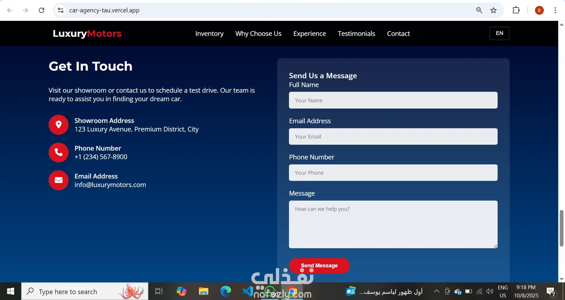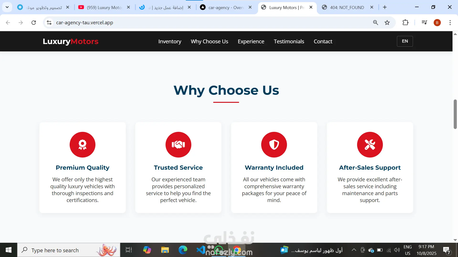 قمت بتصميم وتطوير موقع متكامل لوكالة سيارات فاخرة، يتميز بواجهة عصرية وسهلة الاستخدام مع تجربة مستخدم سلسة. الموقع يتكون من أقسام رئيسية تشمل: