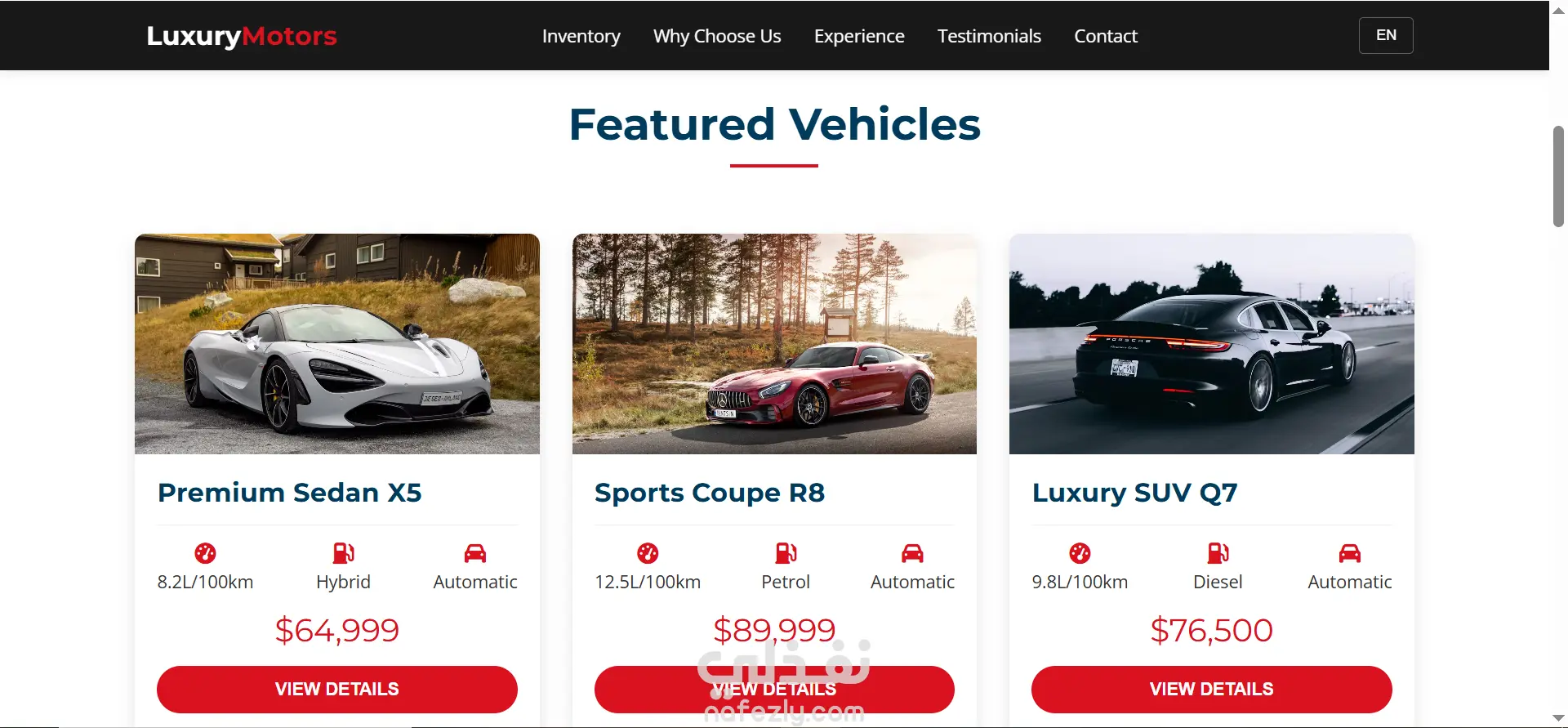 قسم عرض السيارات المميزة مع تفاصيل الأسعار والمواصفات.