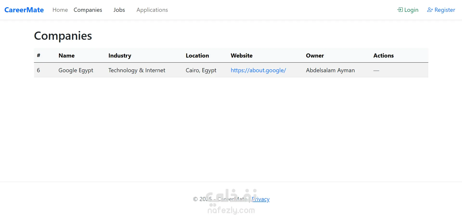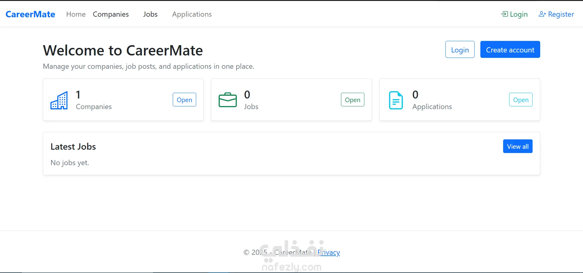 CareerMate هو تطبيق ويب متكامل لإدارة عمليات التوظيف، مطوّر بلغة C# باستخدام ASP.NET Core MVC وEntity Framework Core مع قاعدة بيانات SQL Server. يتيح للمستخدمين إنشاء حساباتهم، تصفّح الوظائف المنشورة، والتقديم عليها بسهولة، بينما يتمكّن أصحاب العمل والمشرفون من نشر الوظائف، مراجعة الطلبات، وإدارة المستخدمين من خلال لوحة تحكم احترافية. يتميز المشروع ببنية برمجية قوية وفق معمارية MVC، مع نظام هوية متكامل (ASP.NET Identity) يوفّر تسجيل دخول آمن، وإدارة للأدوار والصلاحيات.
