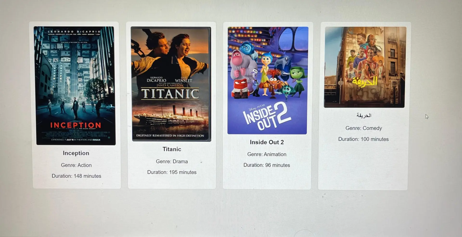 movie details, showtimes, and user information. This full-stack integration ensured seamless