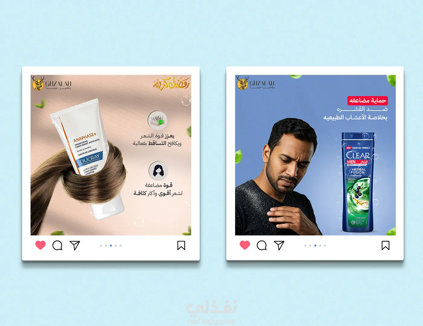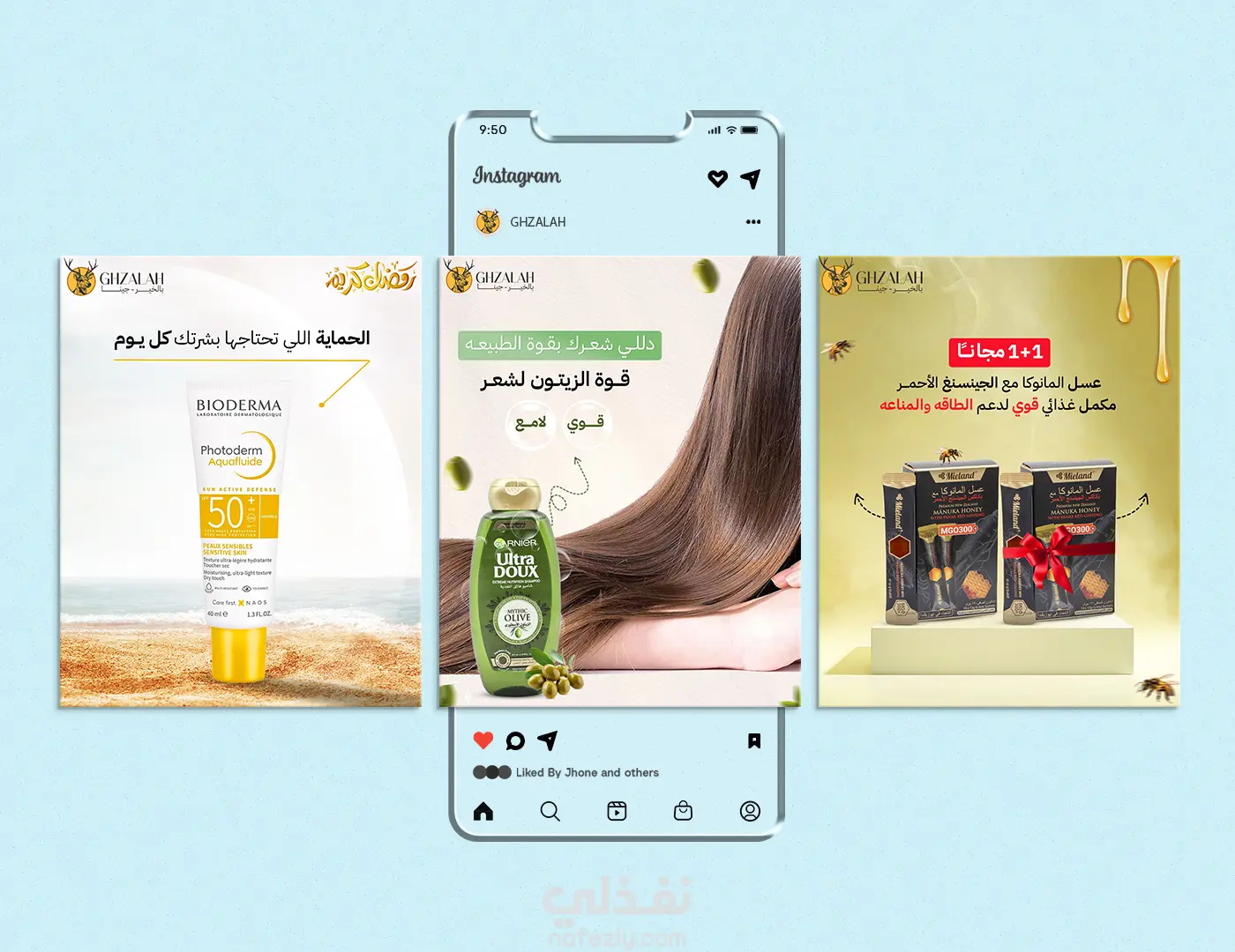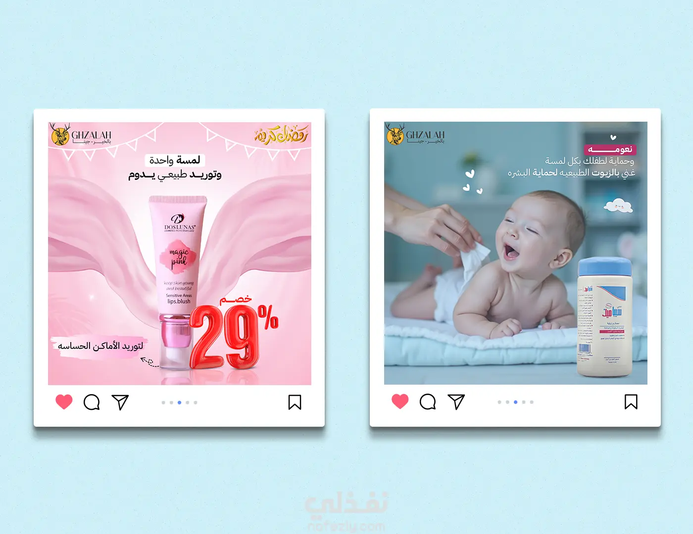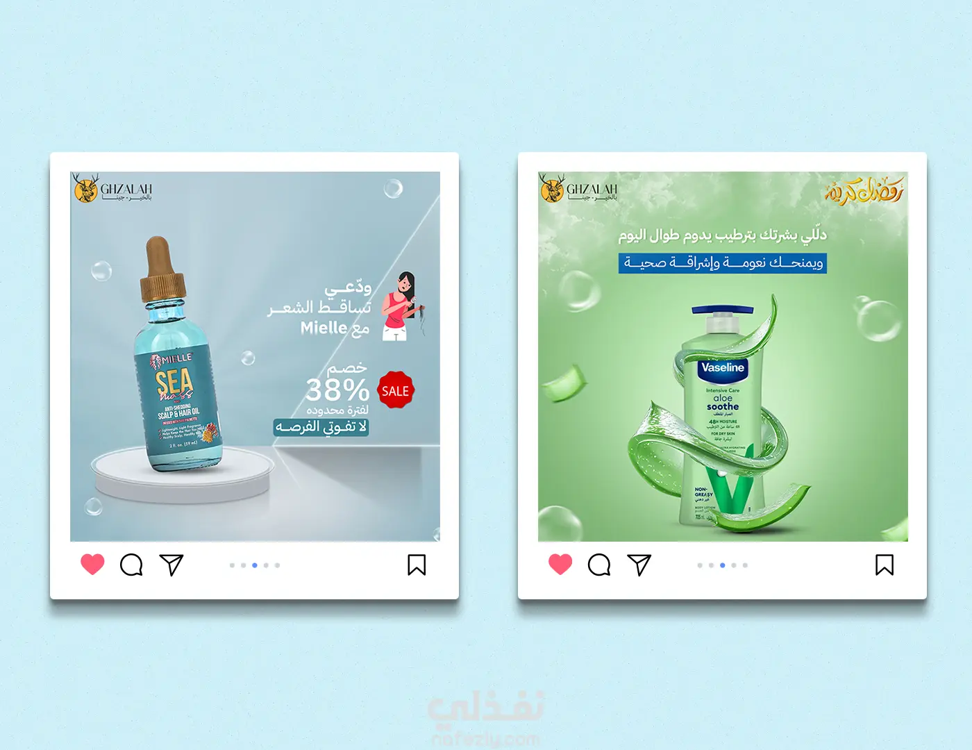 تصميمات سوشيال ميديا لمتجر غزاله تم تنفيذ التصميمات علي ادوبي فوتوشوب