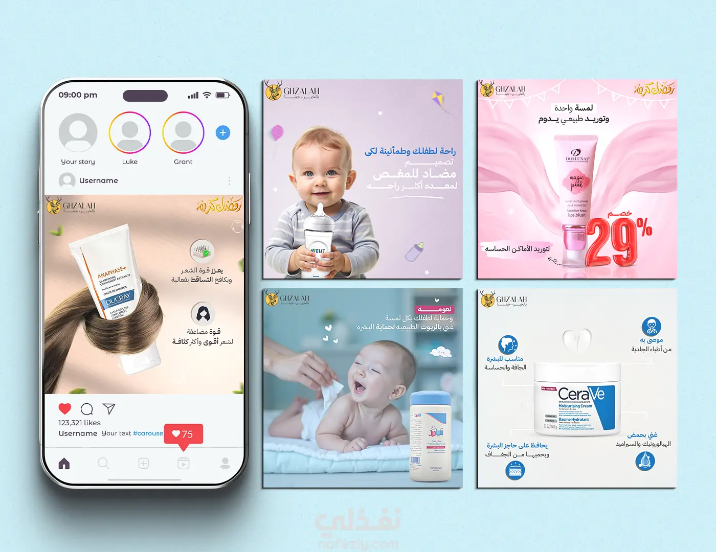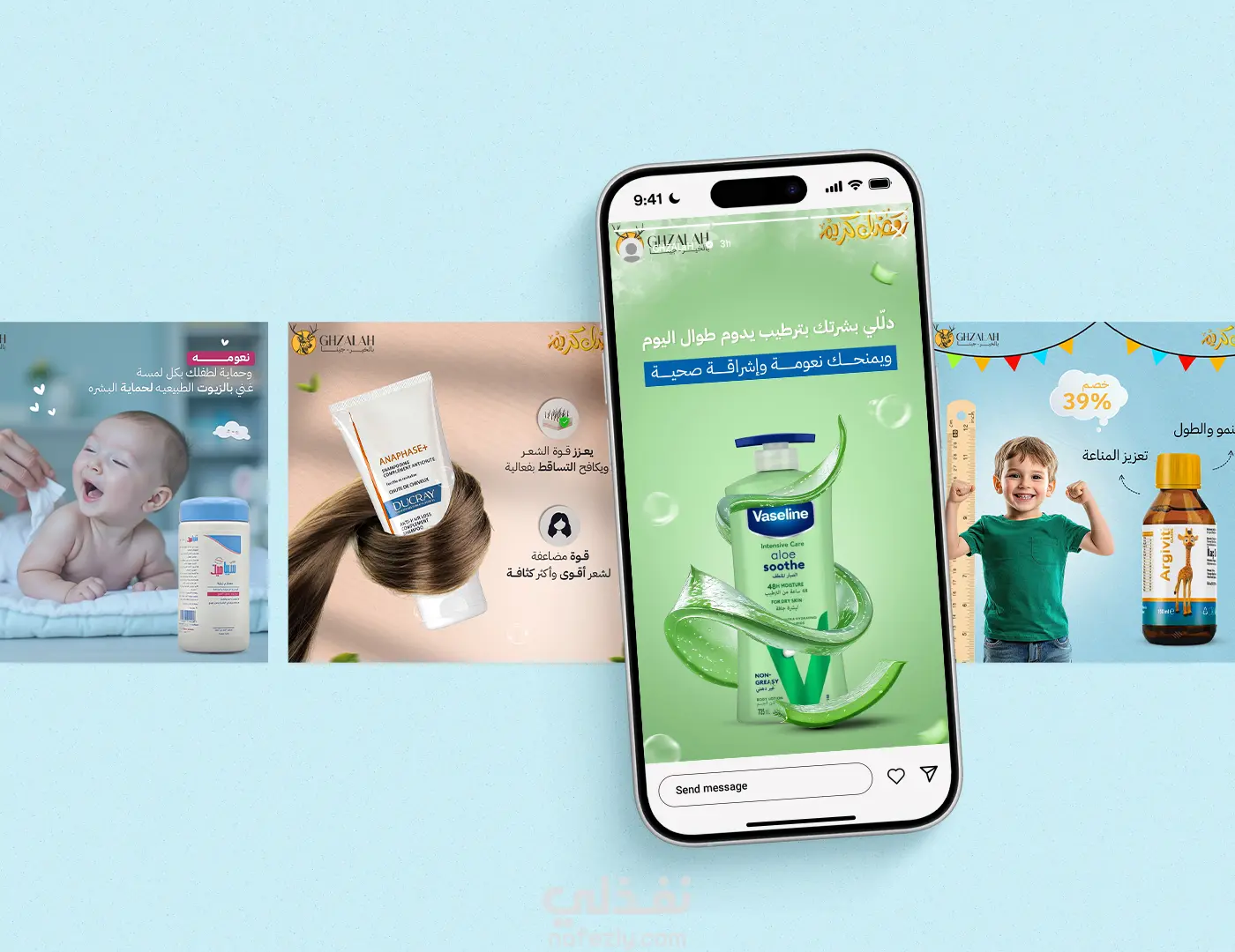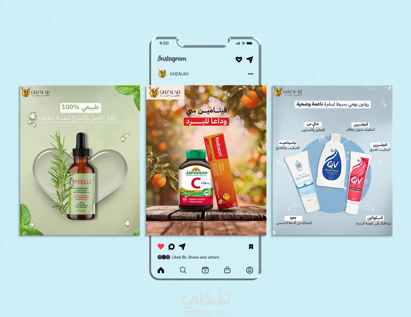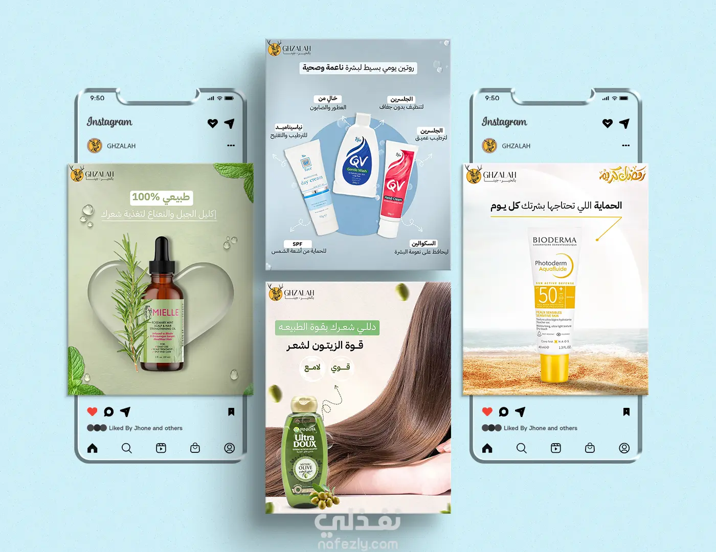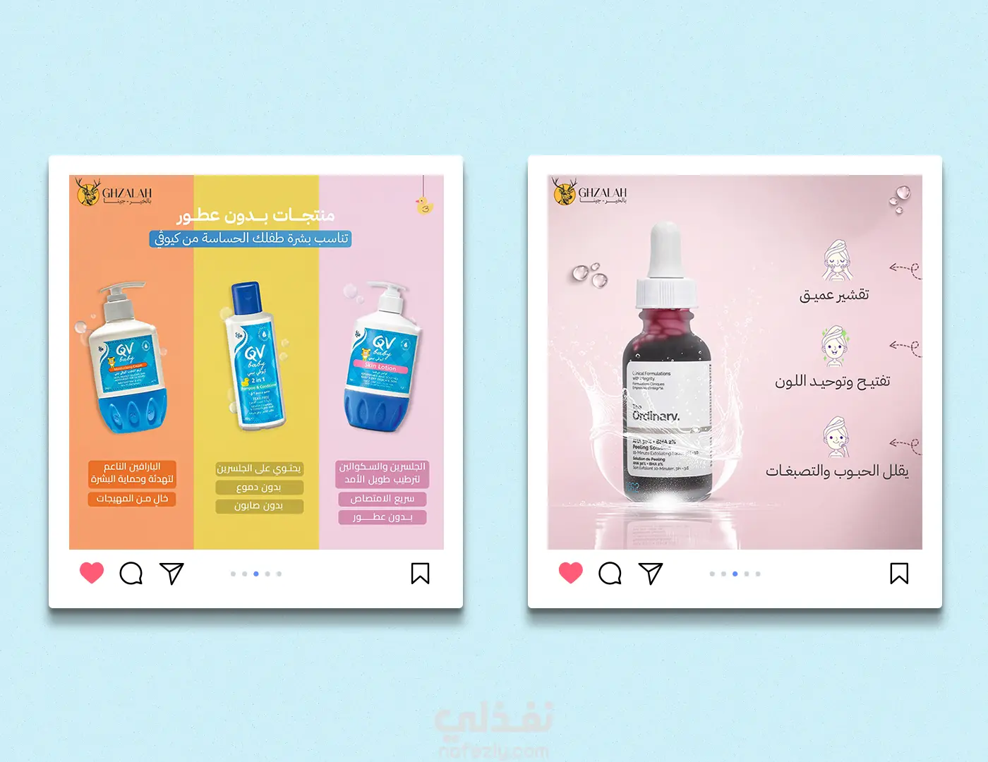تصميمات سوشيال ميديا لمتجر غزاله تم تنفيذ التصميمات علي ادوبي فوتوشوب