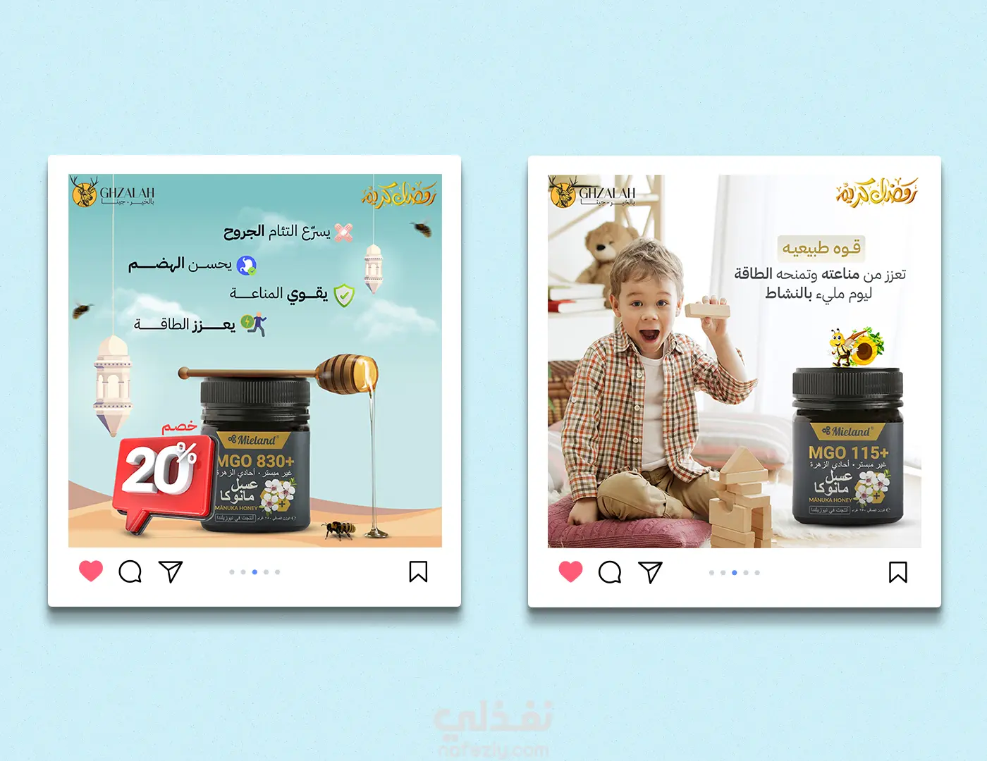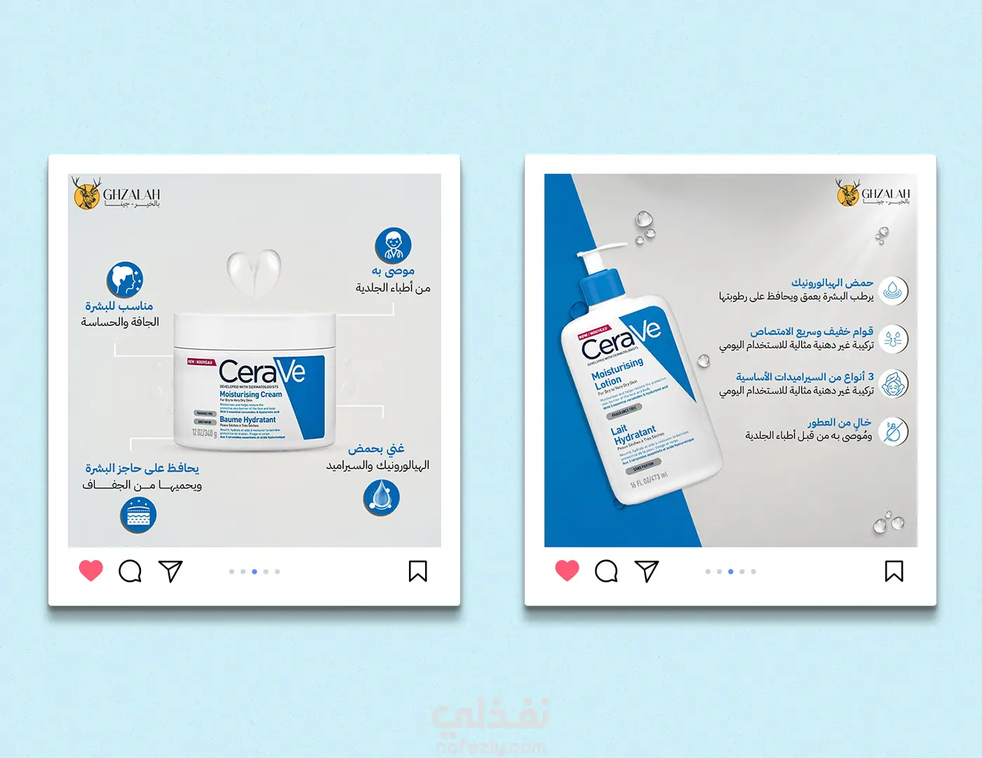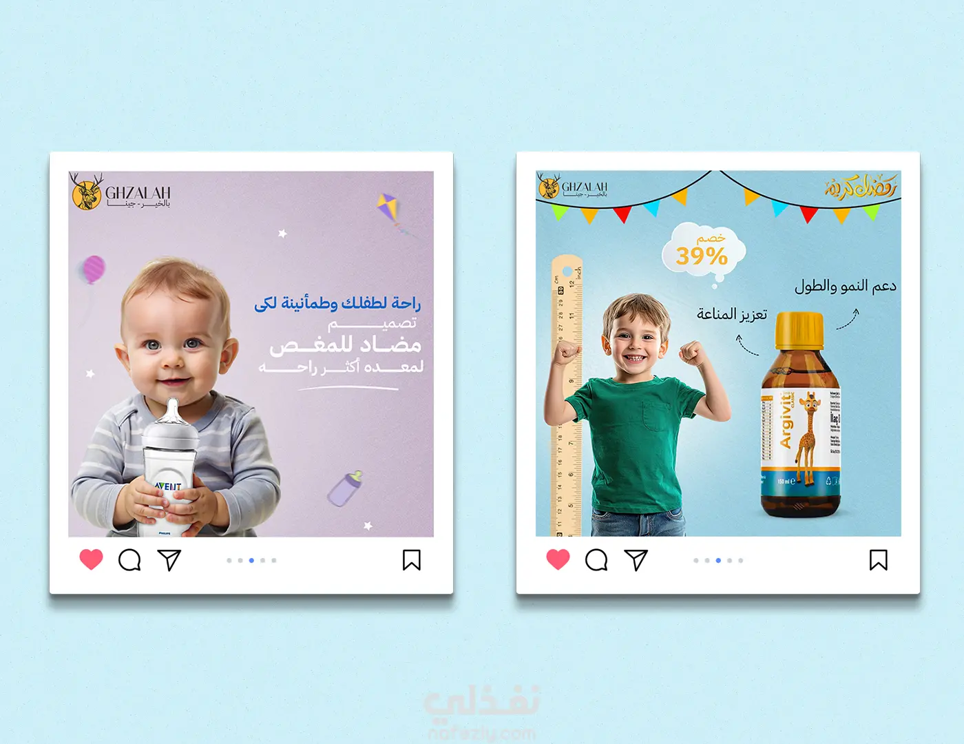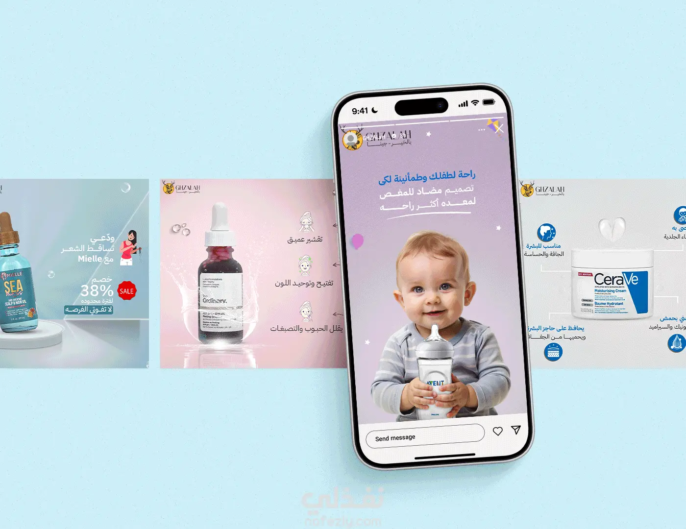 تصميمات سوشيال ميديا لمتجر غزاله تم تنفيذ التصميمات علي ادوبي فوتوشوب