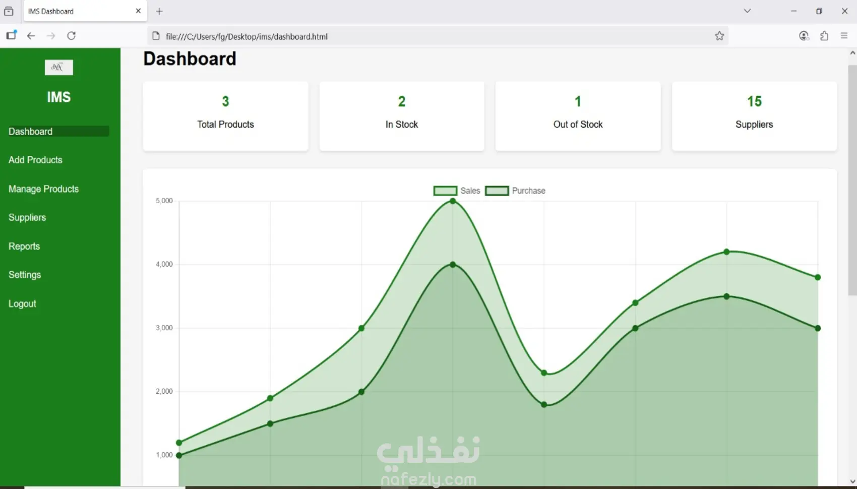 سأقوم بتصميم وتطوير 6 صفحات Front-End رئيسية لنظام إدارة المخزون، وهي: 1. صفحة تسجيل الدخول (Login Page). 2. لوحة التحكم الرئيسية (Dashboard). 3. صفحة قائمة المنتجات (Products List). 4. صفحة إضافة/تعديل منتج (Add/Edit Product). 5. صفحة إدارة المخزون (Stock Management). 6. صفحة التقارير والإحصائيات (Reports & Analytics). 🔹 الصفحات ستكون متجاوبة بالكامل مع الموبايل والتابلت والكمبيوتر. 🔹 الكود سيكون نظيف ومرتب باستخدام (HTML, CSS, JS أو React). 🔹 تسليم ملفات منظمة مع إرشادات تشغيل مبسطة.