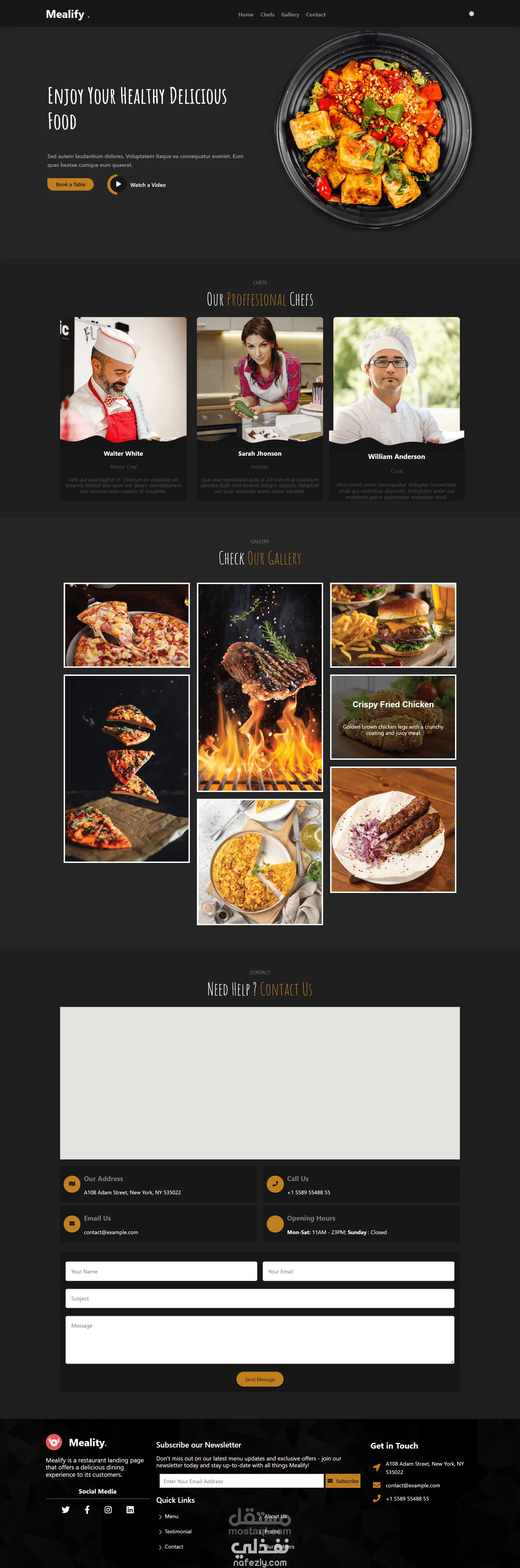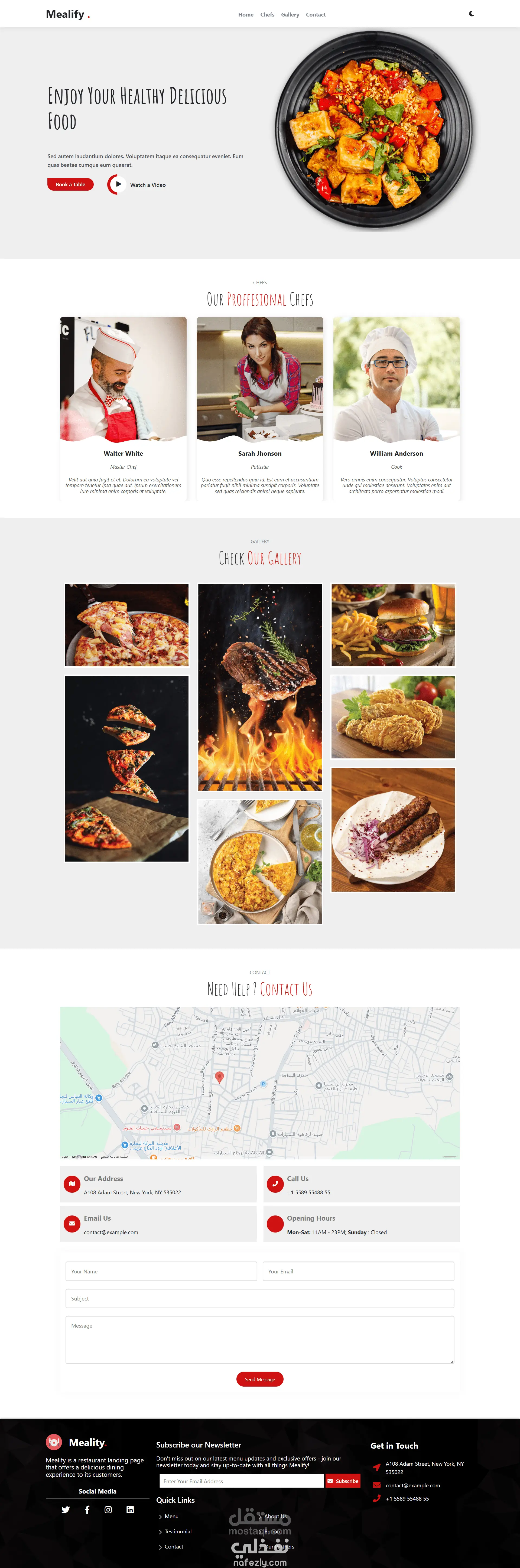 تصميم موقع مطعم متجاوب على جميع الشاشات باستخدام لغة html و css و Javascript و bootstrap و J-Query بطاقة العمل
