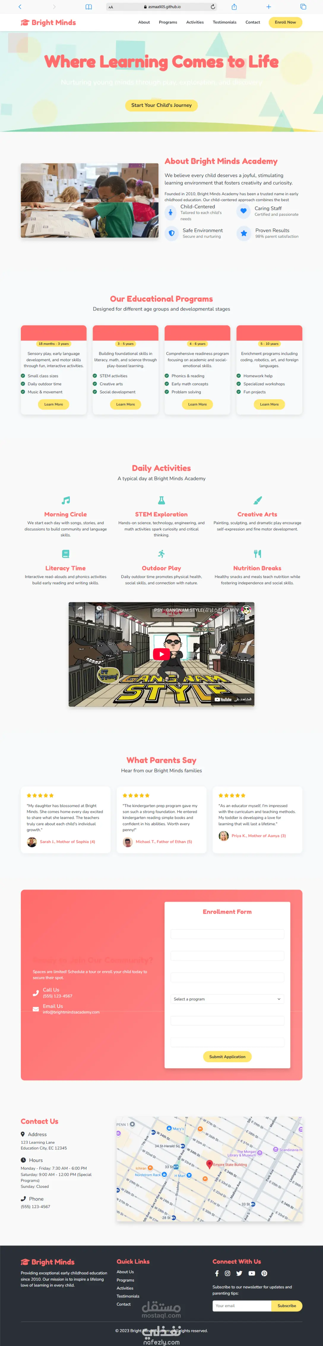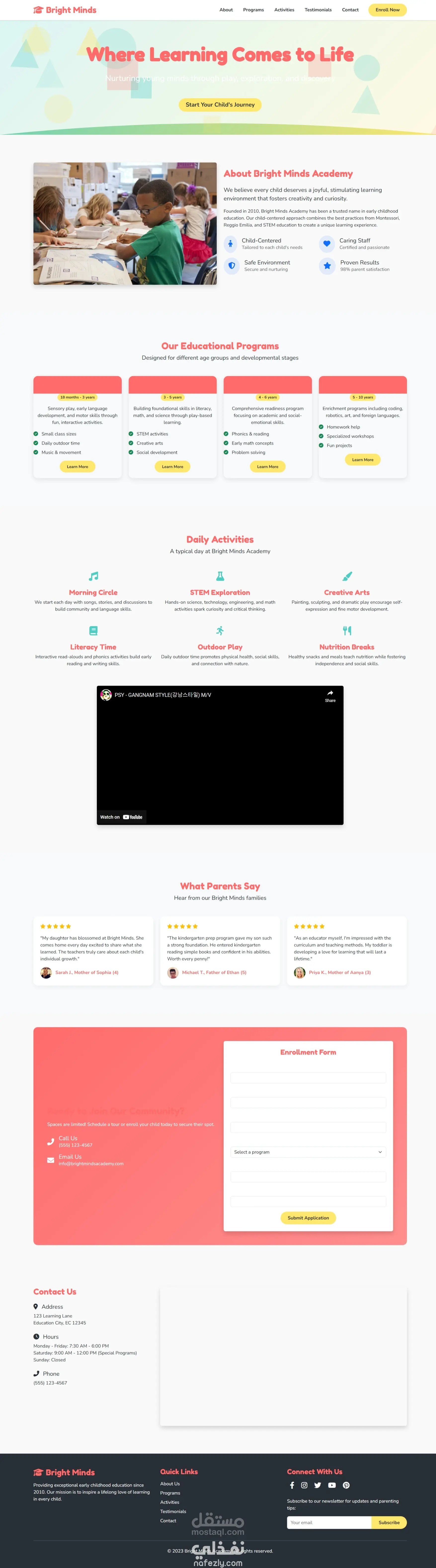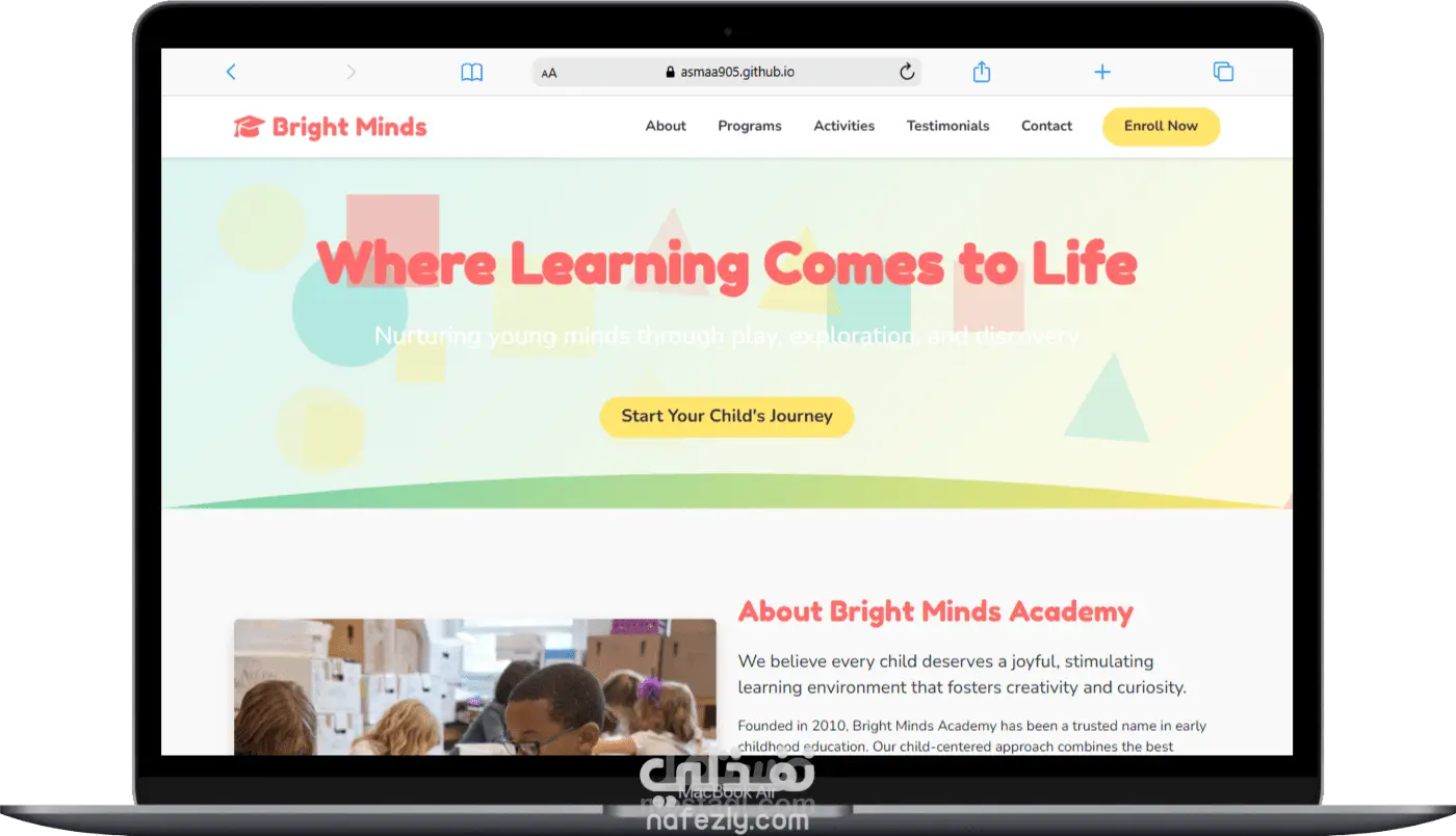 صفحة هبوط موقع اكاديمية اطفال باستخدام لغة Html, css, javascript