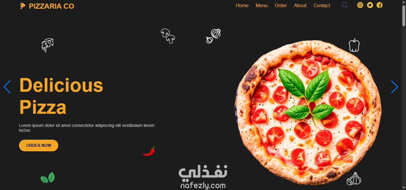 موقعي هو موقع ويب تفاعلي مخصص لعشاق البيتزا، تم تطويره باستخدام HTML وCSS وJavaScript. يتيح للمستخدمين استعراض أنواع البيتزا المختلفة بطريقة جذابة وسهلة الاستخدام، مع تصميم عصري وواجهة مريحة. يحتوي الموقع على أقسام لعرض البيتزا الأكثر شهرة، قوائم بالأسعار، وعروض خاصة، بالإضافة إلى لمسات جمالية مثل السلايدر والحركات التفاعلية لزيادة متعة التصفح. الهدف من الموقع هو تقديم تجربة ممتعة وبسيطة به خاصية تسجيل دخول و ايضا خاصية اختيار مكونات البيتزا بنفسهم .