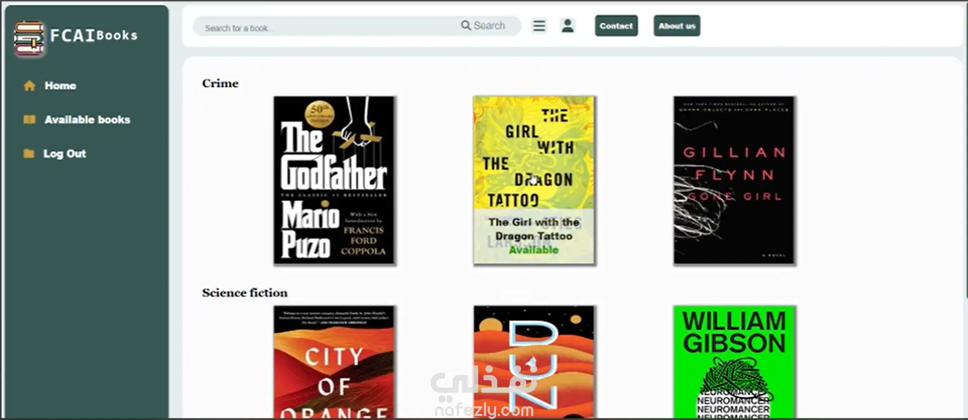 عرض الكتب بصورة منظمة مع غلاف وعنوان ووصف.