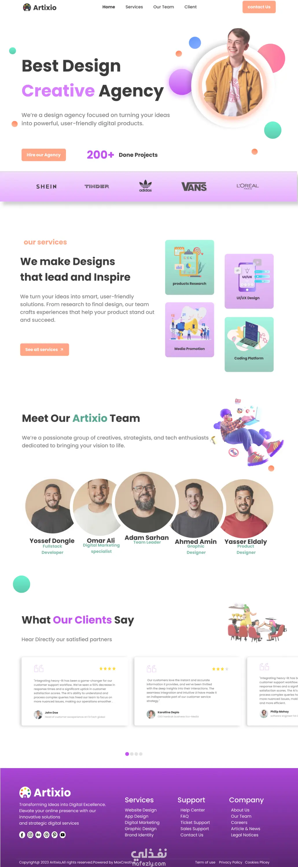 تم تصميم صفحة الهبوط دي لوكالة إبداعية اسمها Artixio، وكان هدفي الأساسي هو إنشاء تصميم بسيط، عصري، وسهل الاستخدام للمستخدم