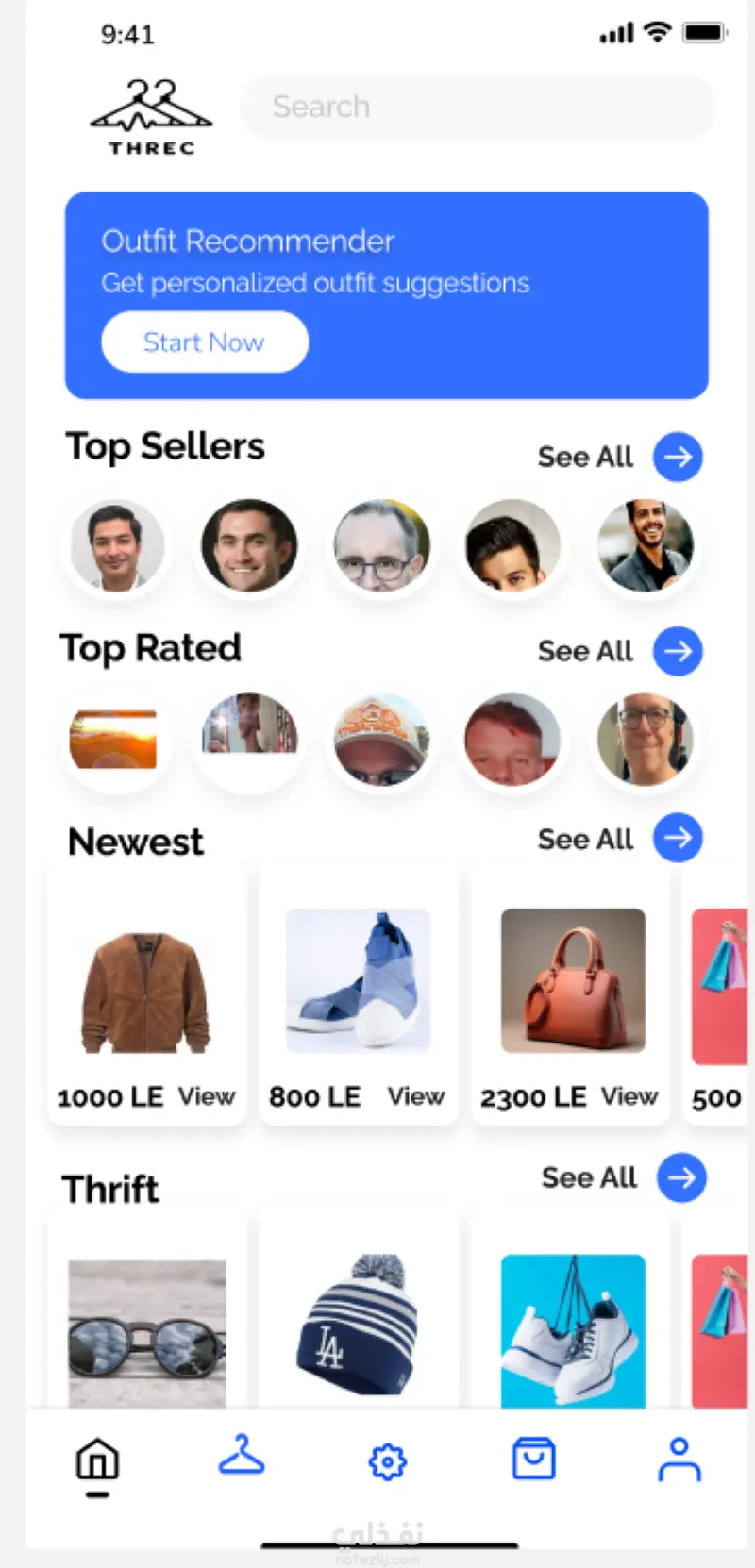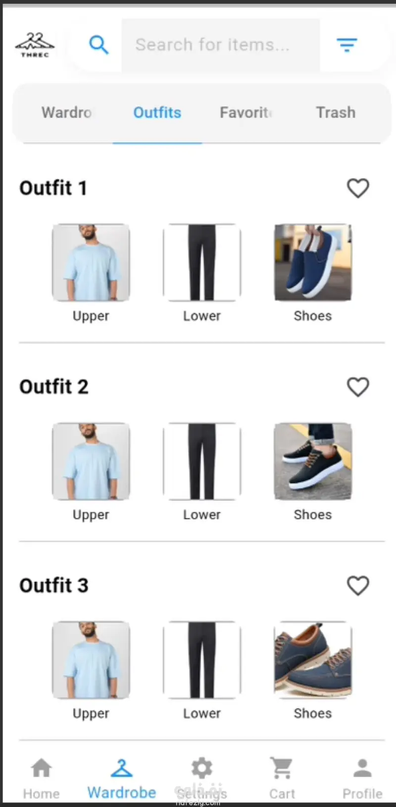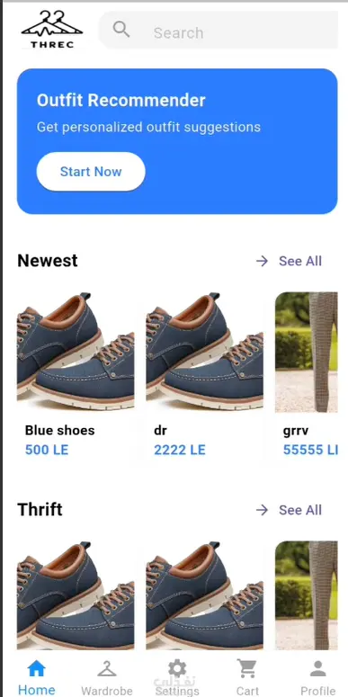 threc هو برنامج موبايل "هاتف" مطور باستخدام فلاتر و دارت يستخدم في بيع و شراء الملابس المستعملة مما يساعد علي الاستدامة كما يستطيع المستخدم الحصول علي ترشيحات ملابس بناءا علي مل يملك من ملابس و يستطيع ايضا الحصول علي ترشيحات ازياء مما يساعد علي اختيار الزي المناسب لكل مناسبة, يستطيع البائع و المشتري تقييم بعضهم البعض مما يزيد المصداقية