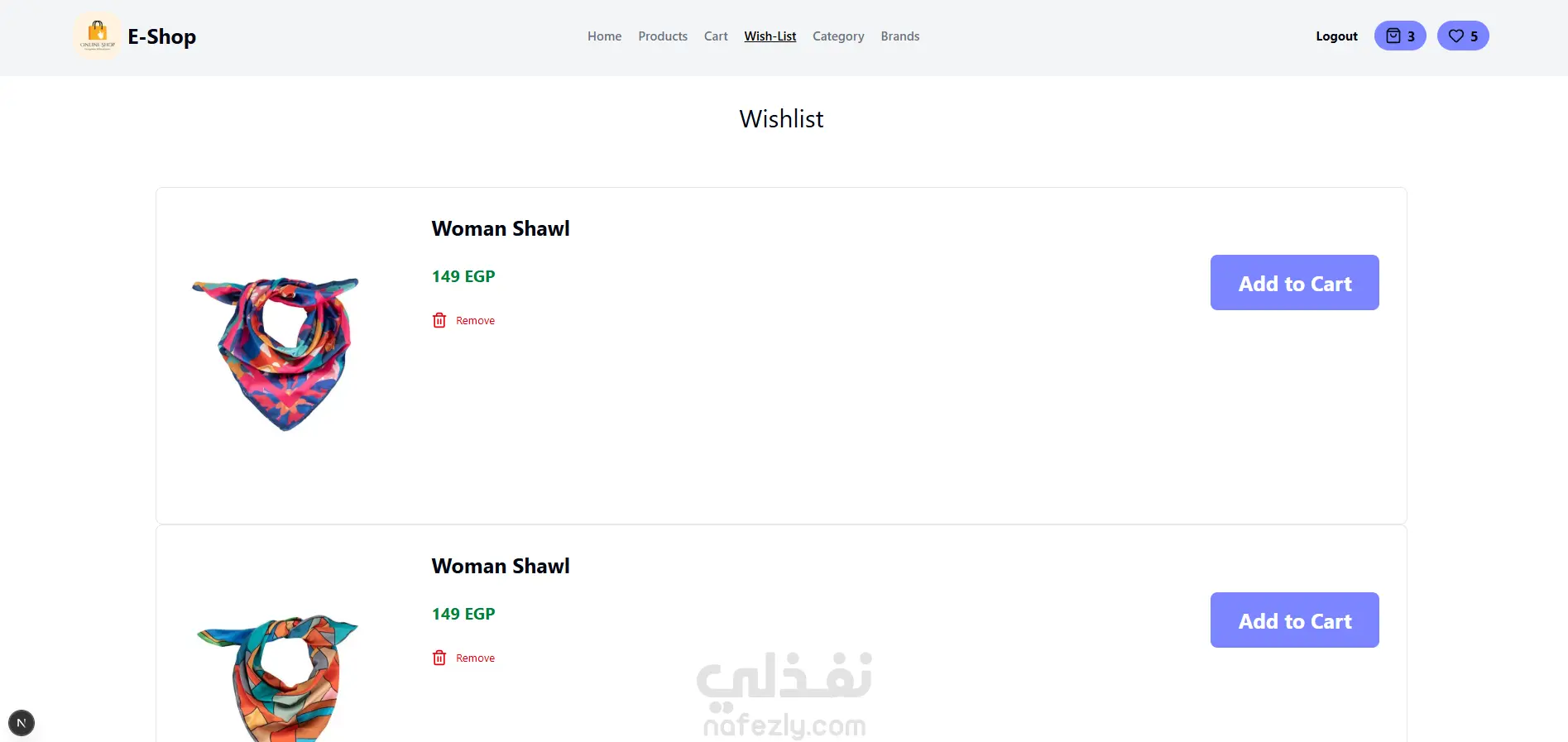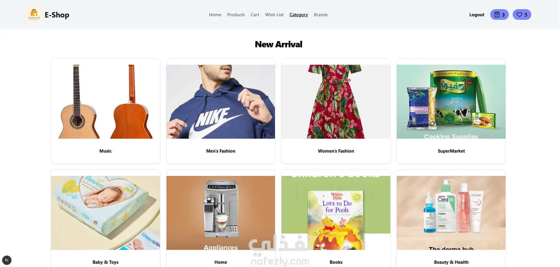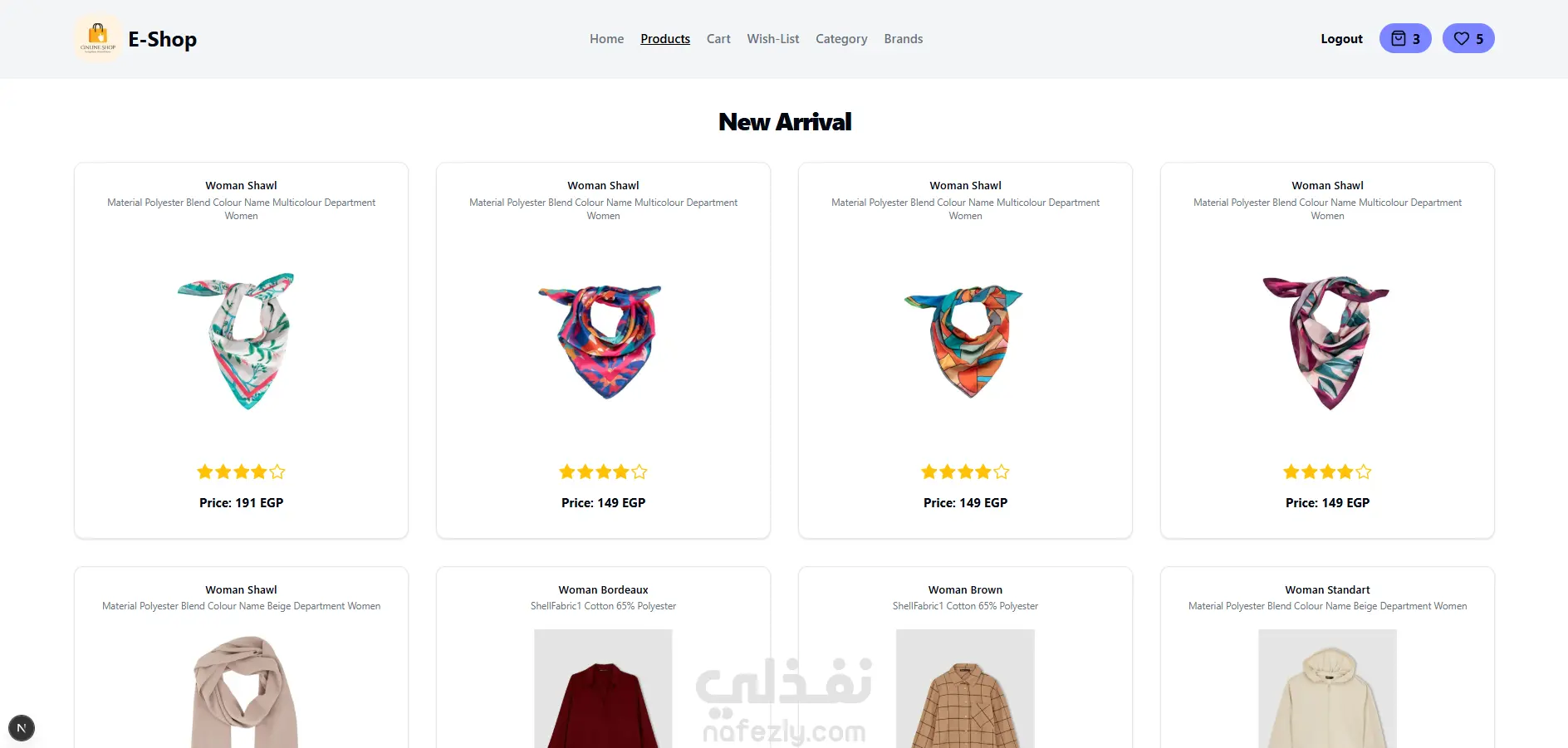 عمل واجهة لموقع متجر الكترونى و تصميم 5 صفحات الHome و الCart و الًWishlist و الproducts و ال brands و تم تصميم صفحة تسجيل الدخول وربطه بالخلفية من خلال API و عمل صفحة للدفع و التسجيل بالموقع مربوط بالخلفية