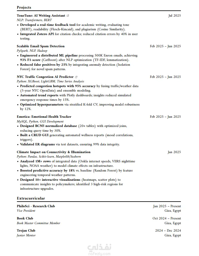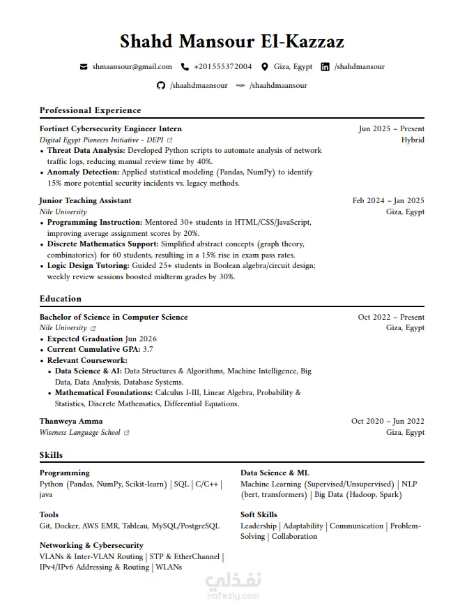 أقدّم خدمة كتابة وتصميم السير الذاتية بشكل احترافي ومنسّق، لتناسب مجالك الدراسي أو المهني وتلفت انتباه أصحاب العمل. تشمل الخدمة: تنسيق وتصميم حديث وجذاب صياغة لغوية قوية وخالية من الأخطاء تحسين عرض الخبرات والمهارات بطريقة تسويقية إمكانية تقديم النسخة بالعربية أو الإنجليزية تنسيق خاص لكل مجال (طلاب، خريجين، مهندسين، أطباء، إداريين...) يعدي من ATS
