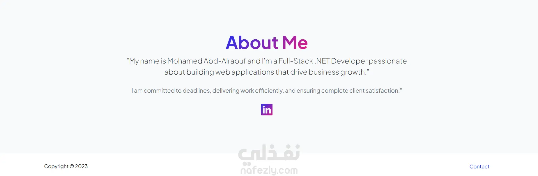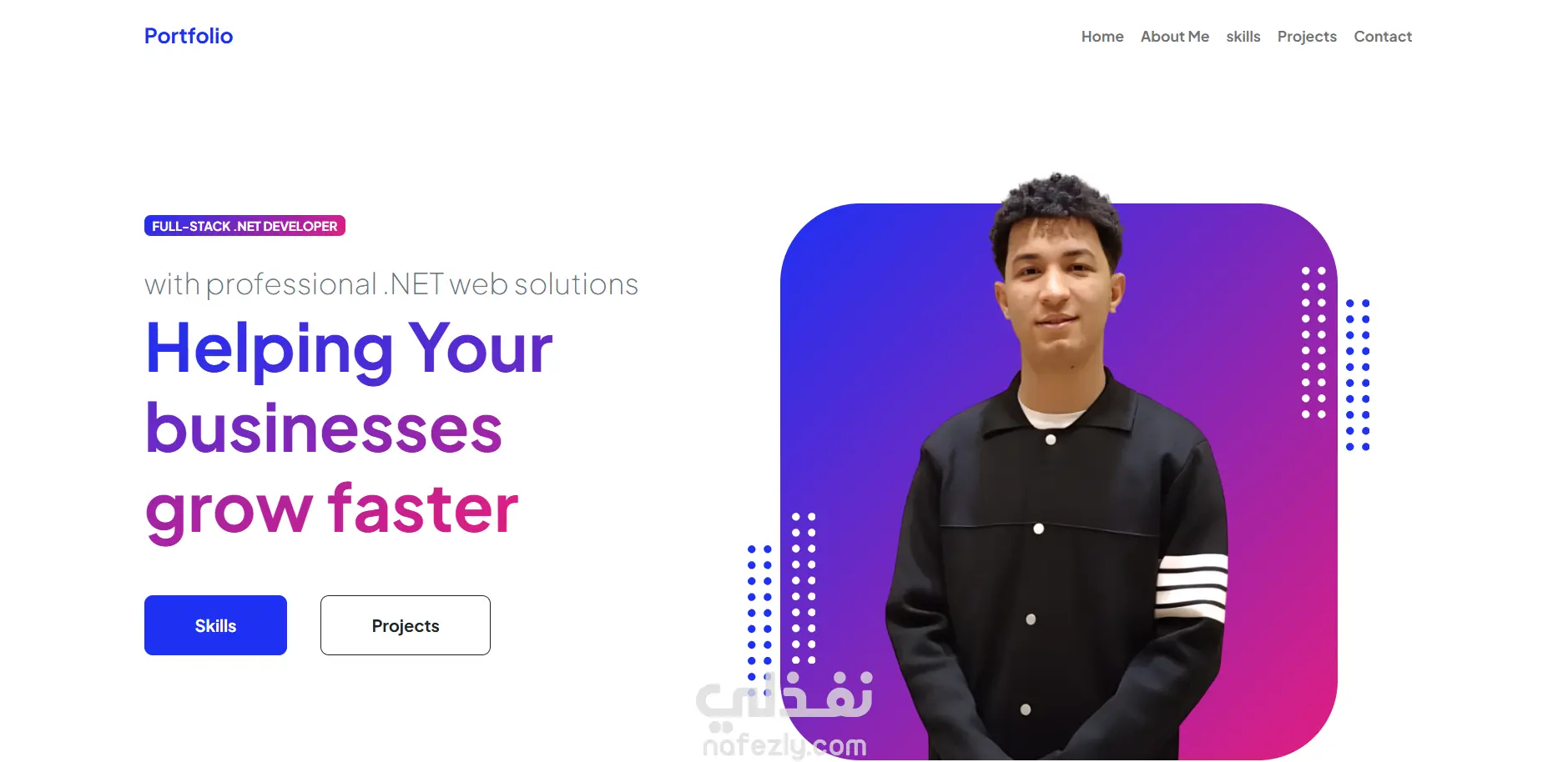 مرحبًا، هذا هو البورتفوليو الخاص بي الذي صممته بأسلوب مميز ليعرض مهاراتي، خبراتي، وأعمالي في مجال تطوير الويب بشكل احترافي وجذاب.