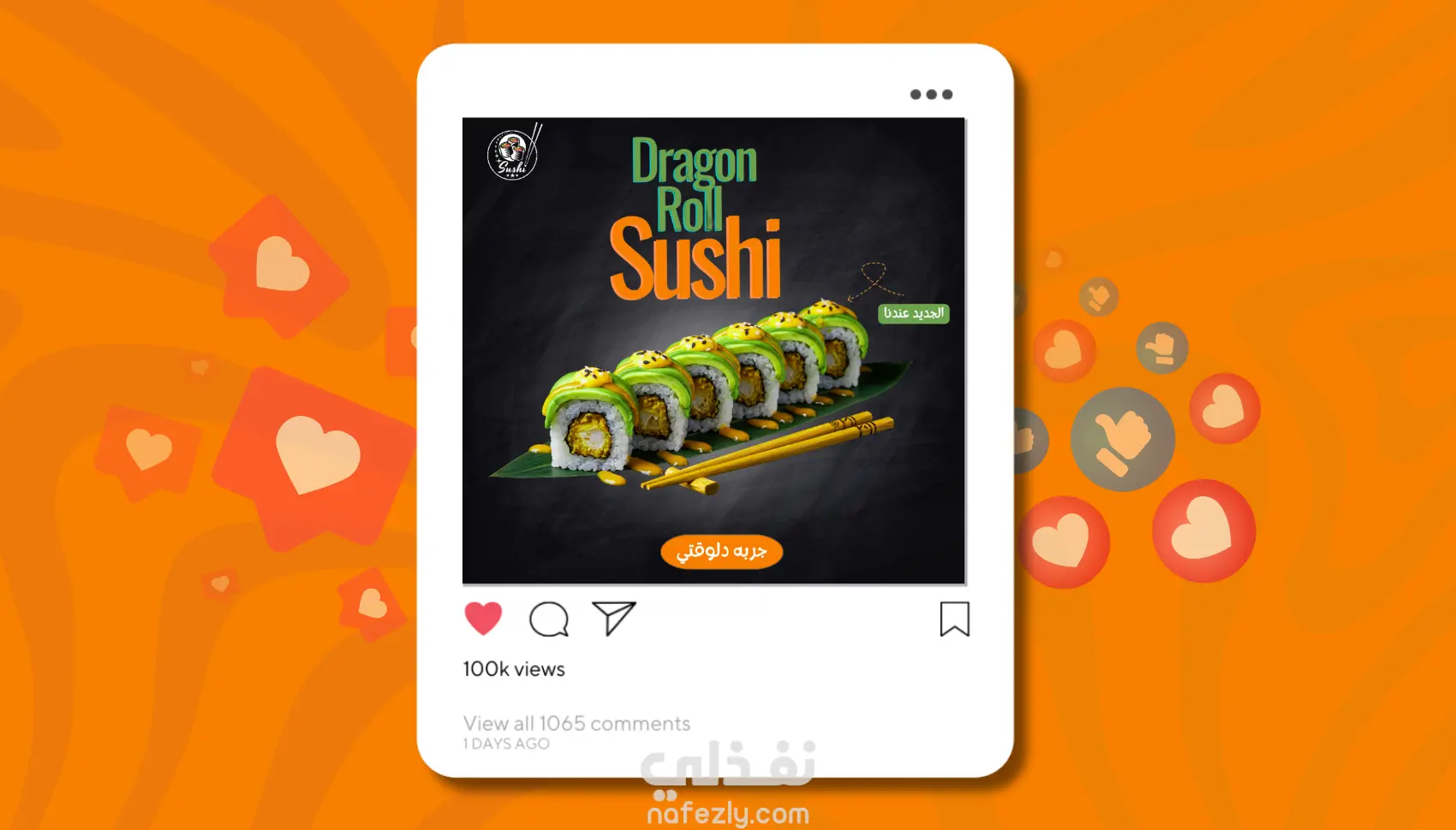 تصميم بوست دعائي لمطعم سوشي الهدف منه جذب انتباه الجمهور على وسائل التواصل الاجتماعي استخدمت خلفية داكنة علشان تبرز ألوان السوشي وتخلي المنتج هو مركز التركيز مع لمسة برتقالية بتدي إحساس بالحيوية والطاقة اعتمدت في التصميم على التوازن بين النص والصورة بحيث يوضح اسم المنتج بشكل واضح ويعطي إحساس بالاحتراف الستايل العام بسيط وحديث يناسب الهوية البصرية لمطاعم الأكل الآسيوي وبيساعد على إبراز جودة المنتج