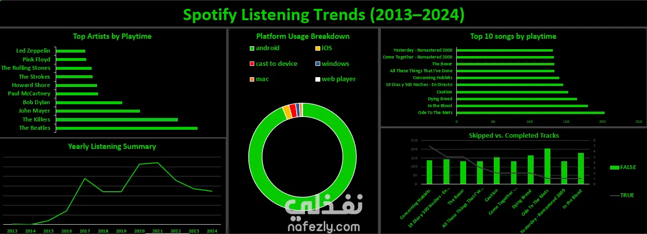لوحه تفاعليه لتحليل بيانات الاستماع لدي شركة سبوتيفاي